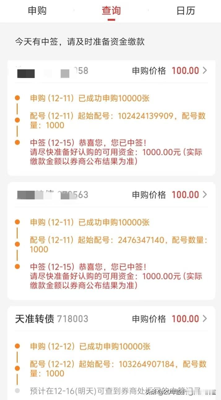 中签了,中签了,又中签了,一天中2个签,决定把这个月的零花钱全部冲进去了。看来打新还是有方法啊。 好家伙,一天中俩,这运气真是没谁了!放鞭炮庆祝都不过分。打新这玩意儿,在咱们大A股,以前就跟中彩票似的,纯靠运气,能中一个都得烧高香,你这倒好,直接双响炮,难怪激动得要把零花钱全压上。这心情,咱懂,跟天上掉馅饼正好砸自己头上一样,不赶紧接住了都怕它飞了。 但兄弟,冷静,千万冷静!打新中签是好事,可别让这好事冲昏了头。你把零花钱“全部冲进去”,这话听着就有点悬。打新为啥让人着迷?不就因为以前有个“新股不败”的神话嘛,中签就等于捡钱,开盘涨一截,闭眼卖都能赚。可那是“以前”了!现在的新股,早不是稳赚不赔的买卖了。全面注册制以后,新股发得又多又快,质量也参差不齐。有的上市当天就破发,高开低走直接套人,中签中得哭都找不着调。你这冲进去的零花钱,要是赶上这么一只,那可就不是惊喜,是惊吓了。 你说“打新还是有方法的”,这话对,也不全对。方法是有,比如坚持申购、开通科创板和创业板权限、多账户(合法合规前提下)提高概率,这些技巧能增加你“中签”的机会。但问题是,中签只是第一步,甚至是最简单的一步。最关键、最难的是“卖”,是啥时候卖、怎么卖。这才是真正考验眼光和定力,也真正决定你是吃肉还是挨打的地方。中签是运气,卖得好才是本事。别把运气当成自己的能力,那可就危险了。 所以啊,零花钱全冲进去,这决心可嘉,但这策略得再琢磨琢磨。新股上市,尤其是现在这行情,波动大得很。你得先看看中的是啥公司,行业怎么样,发行价高不高,估值是不是离谱。别两眼一闭就all in。更稳妥的办法,是定个规矩:比如,不管多看好,一只新股最多投入自己准备金的多少比例;再比如,设定个止盈止损点,涨到多少一定卖一部分,跌到多少坚决割肉,别跟它谈恋爱。拿零花钱玩,图个乐子、学点经验可以,千万别把它当成“搏一把翻身”的赌局,那就变味了。 打新中签,高兴一晚上就得了。第二天开盘前,就得把高兴劲儿收起来,冷静地把它当成一次普通的投资决策来处理。研究公司,观察盘面,计划交易。记住,市场里,活着永远比赚一次快钱重要。用不影响生活的零花钱,体验体验中签的喜悦和卖飞的懊悔,都是宝贵的经历。但要是把身家都押在这上面,那性质就变了。咱还是稳着点来,细水长流,你说是不是? 各位读者你们怎么看?欢迎在评论区讨论。新股申购 新股收益 新股发行