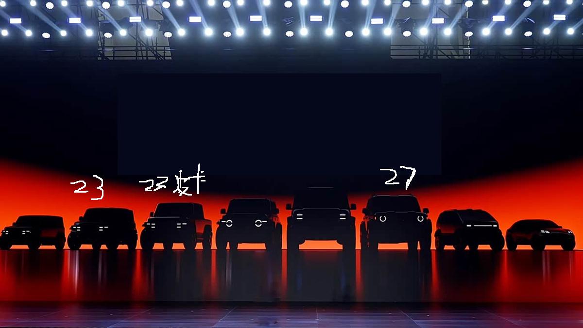 奇瑞iCAR将被打造成新能源硬派专属品牌? 在近日的奇瑞iCAR品牌首届用户节上,iCAR品牌发布了一张品牌产品的规划图,从细节能够看到,其中左二是已经上市的V23,左三应该是V23的皮卡版; 右三则是即将上市的V27,右二是之前亮相过的概念车X25; 重点是中间的两款,其中V27左侧的明显尺寸还要比V27大不小,也是很硬派的前脸造型轮廓,这个可能会是未来的旗舰车型;这个大块头左侧的车型前脸是212风格设计,灯组的轮廓比V23更212,这个车的体量看上去会是介于V23和V27之间的; 最左侧的,看着有点小号V23的感觉,目前10万以内方盒子基本还是空白,如果奇瑞能够快速的出一款10万以内方盒子,抢到市场先机,预计会成为小爆款。 奇瑞已经用捷途纵横出击硬派SUV市场了,这iCAR也来助攻,看来不久之后的硬派SUV市场就会出现百花齐放、百家争鸣的景象了。【来自懂车帝车友圈】