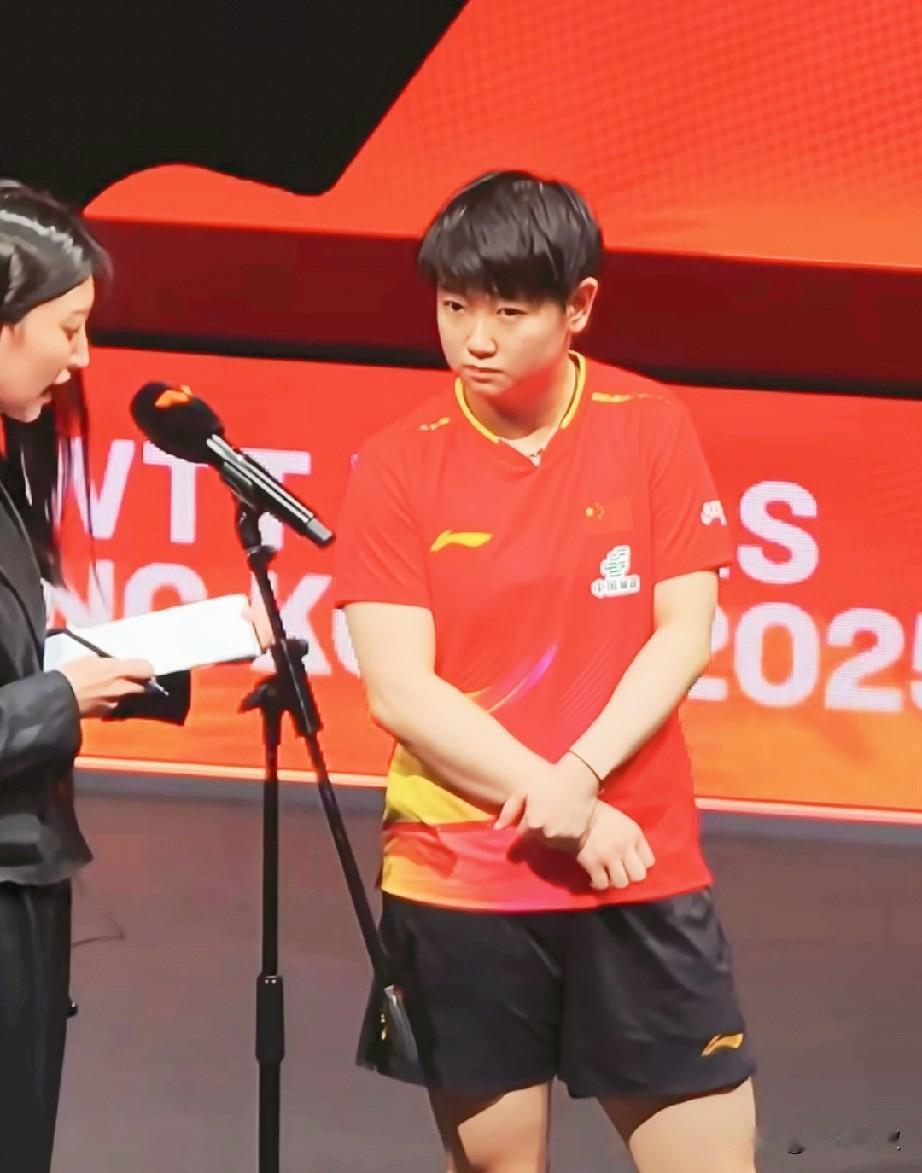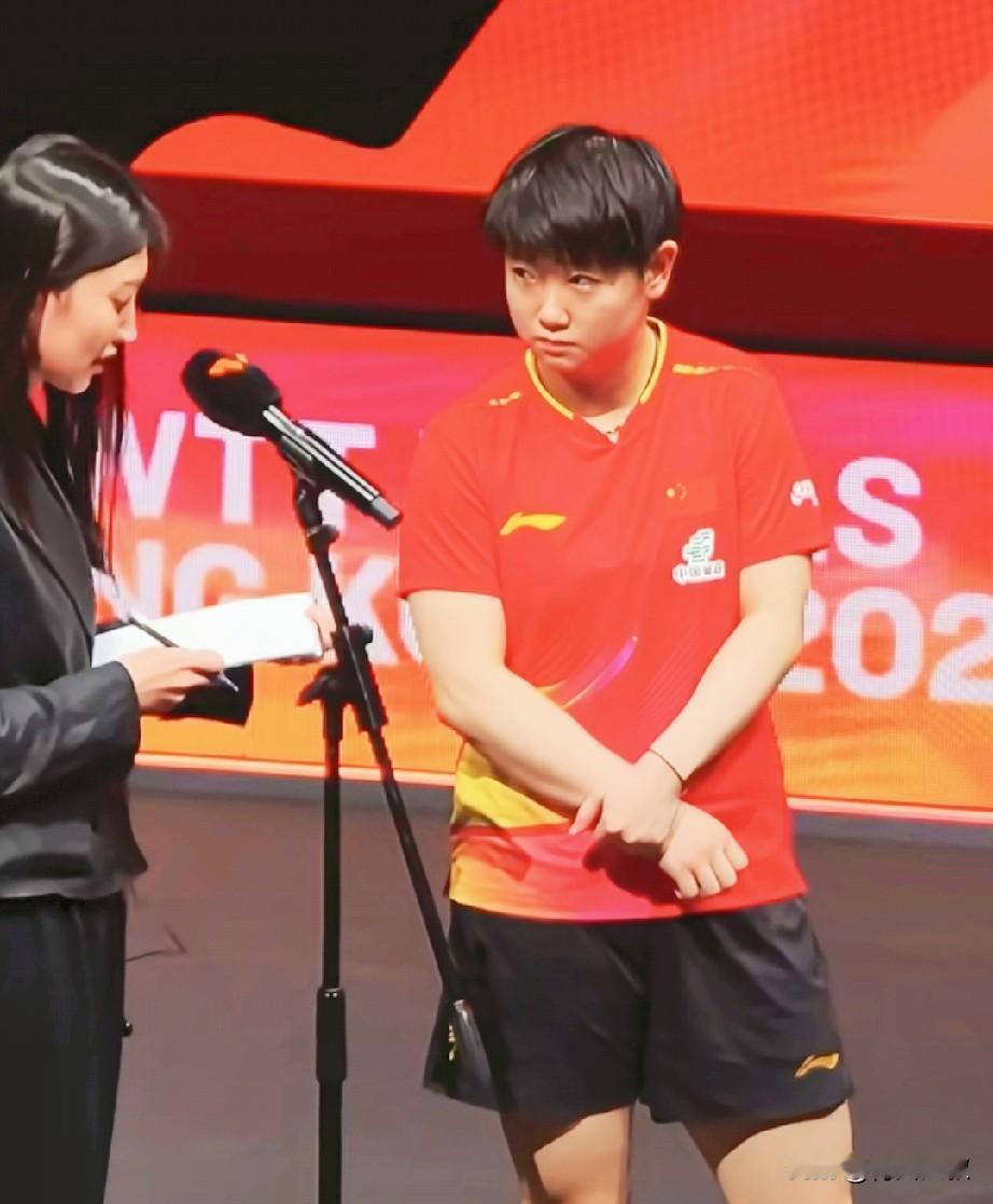 采访孙颖莎的这一幕,笑死我了!莎莎直勾勾的盯着翻译看! 有个女粉丝喊, 快看快