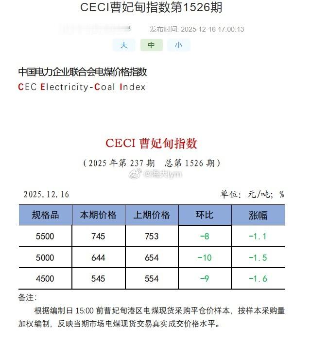 港口5500大卡动力煤价格近一个月下跌85元/吨(10%的幅度,830跌至745)(引用中电联 曹妃甸港口5500大卡动力煤报价)截止到12月16日,今年动力煤最高价830元/吨(11月13日-11月19日维持在这个价格);今年动力煤最低价616元/吨(5月30日-6月18日维持在这个价格);12月16日价格745元/吨动力煤价格