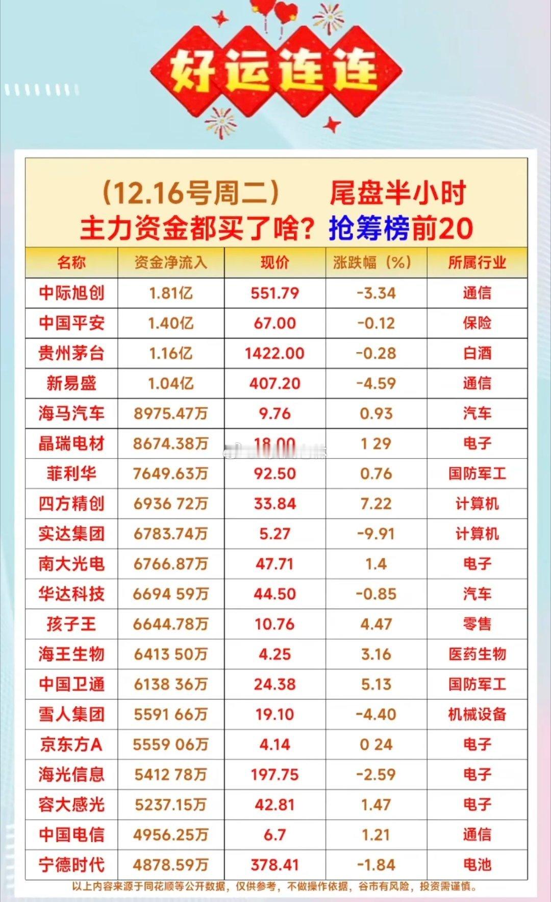12.16周二尾盘半小时主力在抢啥股?1.CPO光模块2.保险,大金融3