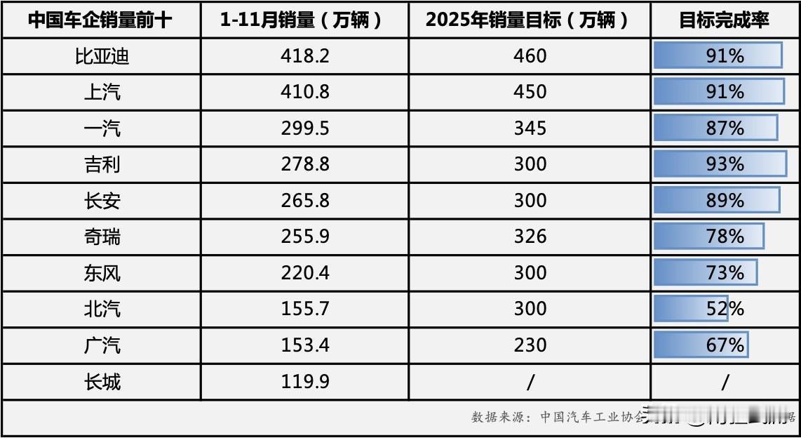 比亚迪:海外+续航双开挂; 前11月销量炸裂 2025年车市年底冲业绩,比亚迪交出了亮眼成绩单。11月单月卖了超48万辆,创下年内新高,前11个月累计销量突破418.2万辆,比去年同期多卖了11.3%,年度目标完成率已经超九成,12月再努努力就能轻松超额完成任务,稳稳坐在新能源车企销量第一的位置。 比亚迪能卖这么好,是因为各个系列的车都很受欢迎。王朝网的秦家族11月卖了70824辆,元家族也卖了47835辆;海洋网的海狮06更是爆款,连续四个月销量超3万辆,累计销量突破13万辆,还刷新了全品类最快达成10万辆的纪录。高端车型表现也不差,方程豹11月卖了37405辆,同比增长339%,连续三个月增速超300%,直接超越蔚小理,其中钛7卖了超2.4万辆,上市80天就卖了5万辆,成了混动SUV和方盒子车型的双料冠军。 海外市场也成了比亚迪的增长亮点,11月乘用车及皮卡海外销量131661辆,比去年同期增长297%,前11个月累计超91万辆,是2024年全年的两倍还多,不出意外12月就能突破海外年销百万的大关。 另外比亚迪的续航特别实在,别家车企爱把续航标得很高,它却反过来,实际能跑的里程经常比标注的还多,而且还能通过OTA升级提升续航,海狮06部分版本升级后,续航直接涨了二三十公里,这波操作也圈了不少粉。