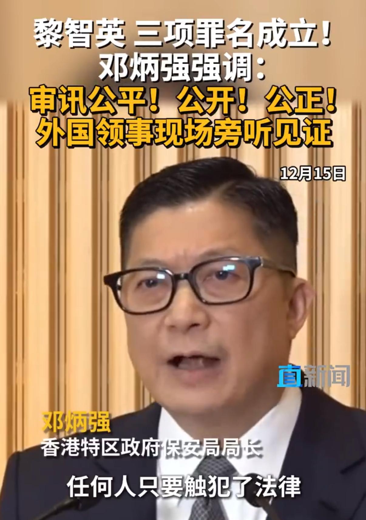 纽约时报中文网昨天(12月15日)发文写道:“特朗普曾表示令黎智英获释‘轻而易举’,如今黎智英被判有罪,是时候兑现他的豪言壮语,为一个勇敢捍卫民主和言论自由的人争取自由。” 12月15日,香港高院对黎智英作出裁决——两项串谋勾结外国势力罪、一项串谋发布煽动刊物罪全部成立。 这场历时2年、实质审讯156天的案件,严格遵循香港司法规范与本地法律,是香港国安法实施以来,首宗审结的重大危害国家安全案件。 约时报马上抛出一篇煽动性文章,提及特朗普曾声称让黎智英获释“轻而易举”,呼吁其“兑现诺言”。 但特朗普当年的表态,本就是特定政治语境下的空头支票。 2020年中美贸易战焦灼之际,他在一次竞选集会上随口提及“能轻松让黎智英获释”,彼时其核心目的是将涉港事务作为谈判筹码,施压中方在关税问题上让步。 这种纯粹出于选举利益的政治口号,既无任何法律依据,也从未有过实际操作规划——如今回头看,更像是一场自导自演的政治秀。 从法律层面看,特朗普的“豪言”从一开始就注定无法兑现。 香港是中国的特别行政区,司法独立受基本法保障,案件审理完全依据香港国安法和本地刑事法律,任何外部势力都无权干涉。 更关键的是,早在2020年8月,针对美方此前单方面暂停多项港美双边协议的错误行径,中方已正式宣布香港特区暂停履行港美刑事司法互助协定,彻底切断了美方试图通过司法渠道干预个案的可能。 这意味着,即便特朗普有心介入,也缺乏任何合法途径:既无法通过司法协作向香港施压,也不能借助外交渠道改变司法判决。 国际法明确规定,主权国家的司法独立不容外部插手,美国自己也始终坚守这一原则——却在香港问题上搞双重标准,本质上是将“人权”“自由”当作干涉他国内政的工具。 黎智英的罪行,绝非西方媒体炒作的“言论自由”那么简单。 控方当庭出示的实打实证据,勾勒出其长期勾结外部势力、破坏香港稳定的完整链条:包括他与数十名外国政客、反华组织成员的通讯记录,涉及资金转移的银行流水,以及通过旗下媒体发布的大量煽动性文章、视频。 证据显示,黎智英曾多次接受境外资金支持,策划针对特区政府的抗议活动。 其掌控的媒体长期刊登虚假信息,煽动民众对抗中央政府与特区政府,甚至号召“武力反抗”,直接为2019年的修例风波中的极端暴力事件推波助澜。 这些行为已严重触犯香港国安法第29条“勾结外国或者境外势力危害国家安全罪”,证据确凿,无可辩驳。 案件审理过程中,香港司法的公正性得到充分体现。辩方不仅获得了完整的阅卷权、举证权,还多次申请传唤证人、质证证据,法院均依法予以保障。 多国驻港领事馆代表、本地及国际媒体全程旁听,全程无任何程序瑕疵,判决公布后,香港社会各界普遍认可,认为这是维护法治权威、捍卫国家安全的正义之举。 香港中联办当天迅速表态,重申中央坚定支持香港特区依法施政,坚决反对任何外部势力干预香港司法和内部事务。 特区政府也强调,司法独立是香港的核心价值,任何形式的施压都不会动摇法院的公正裁决。 事实上,自2020年香港国安法实施以来,类似的外部炒作从未间断,但香港的司法进程始终不受影响,彰显了法治的刚性与韧性。 特朗普如今根本没有动力兑现所谓“承诺”,当前中美经贸关系趋于缓和,他本人已计划2026年访华,寻求在经贸、投资等领域的合作空间。 美国国内的政治现实也不允许他这么做,2026年美国中选临近,两党斗争激烈,涉港议题在美国选民眼中并非核心关切。 历史上,从未有美国总统成功干预过香港司法个案,特朗普的“轻而易举”,终究只是自欺欺人的政治口号。 西方世界的所谓“声援”,同样充满虚伪与分裂,英国作为前殖民宗主国,虽多次发表涉港声明,但回归后香港事务早已完全归属中国主权,英国无权插手。 欧盟各国大多停留在口头表态,没有任何实质行动,毕竟其与中国的经贸联系密切,不愿因单一议题牺牲自身利益。 更讽刺的是,美国自己在国家安全问题上向来采取高压姿态,近年来,美国以“国家安全”为由,起诉多名泄密者、反战人士,动辄判处重刑。 香港国安法实施以来,极端暴力事件下降95%以上,社会秩序全面恢复。 2024年访港旅客量恢复至2019年的80%,GDP同比增长3.2%,经济民生逐步回暖;超过70%的香港市民认为,国安法让香港更安全、更稳定。 任何分裂国家、危害安全的行径,都将被永远钉在历史的耻辱柱上;而那些试图干涉他国内政的外部势力,最终只会自食恶果,沦为国际社会的笑柄。 参考信源: 黎智英,三项罪名成立! 2025-12-15 法治日报