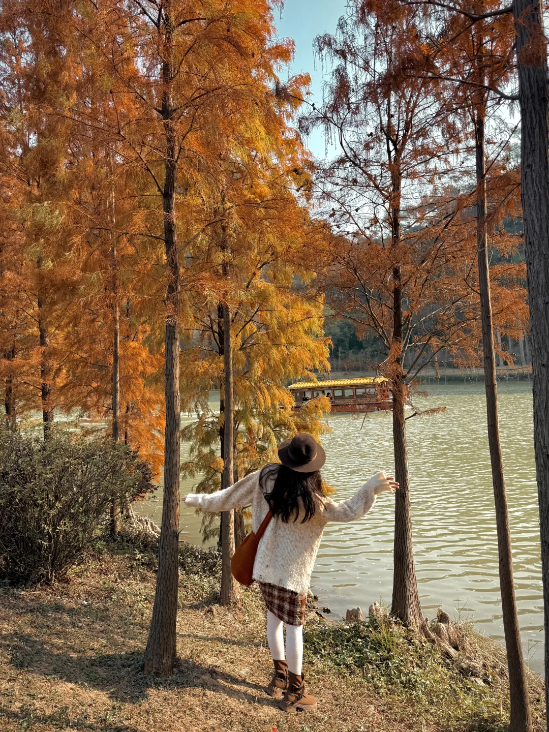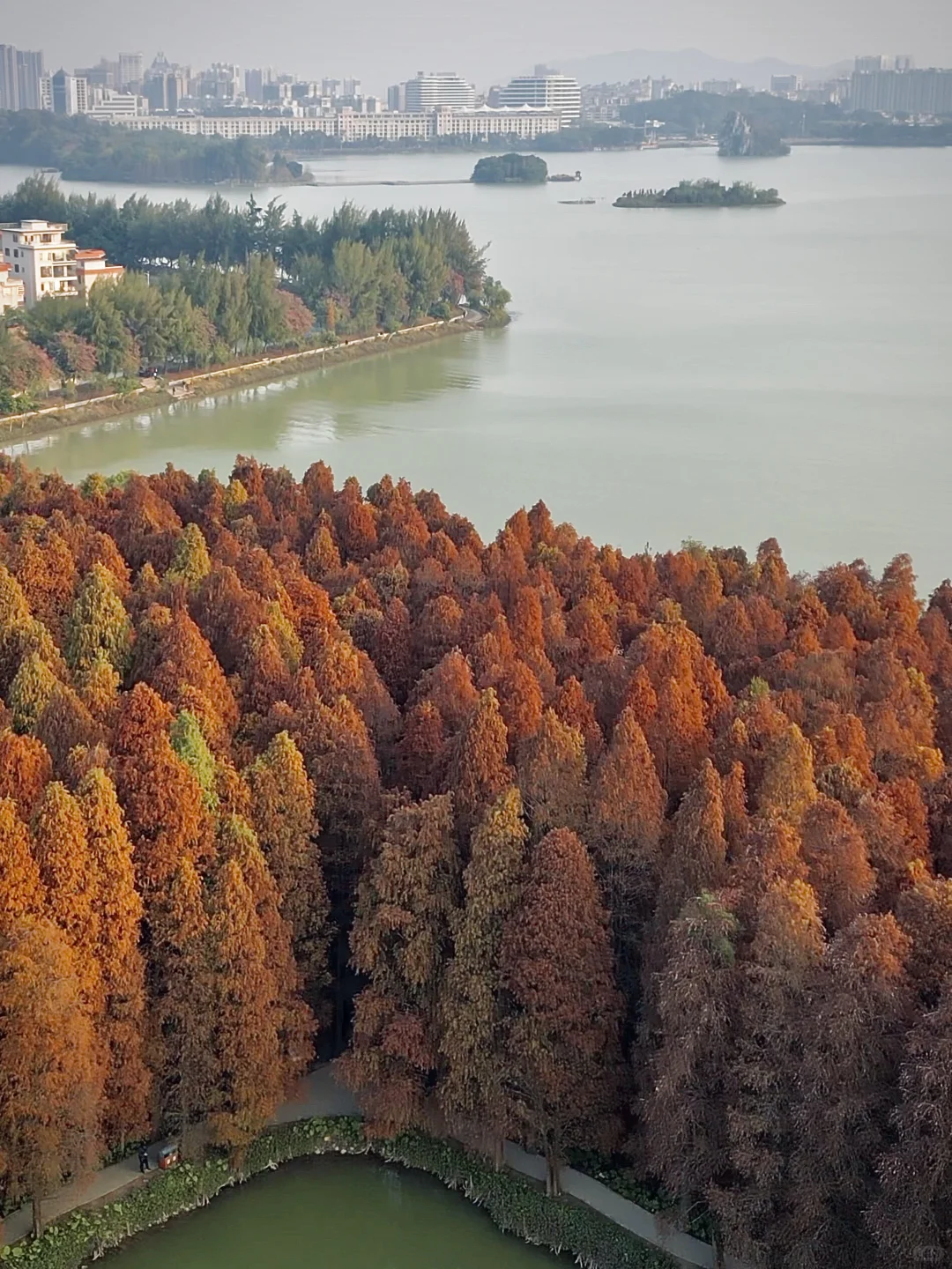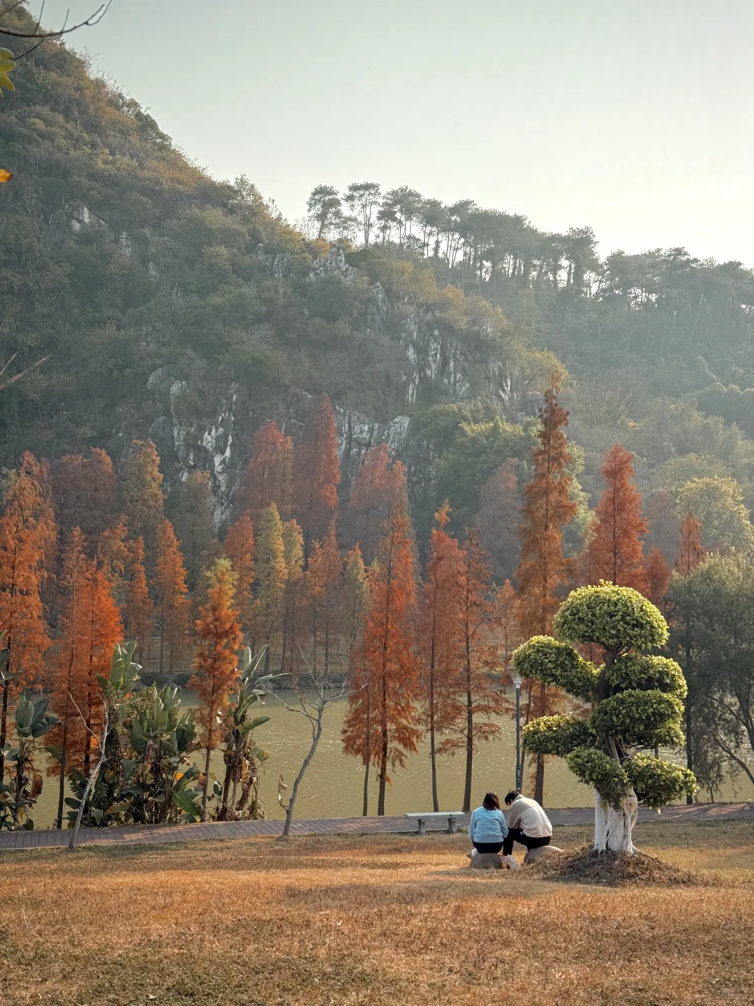 ✔️七星岩的落羽杉现在已经开始逐渐变黄了,根据往年经验,落羽杉在12月底1月初就会彻底变红(去年因为冷推迟在到了1月上旬,照片是1.10号拍的,不过今年整体气温都比较暖和,估计元旦就能看到了),一般红一个月叶子就会掉光,因此观赏期是1月底前,记得来拍照哦~