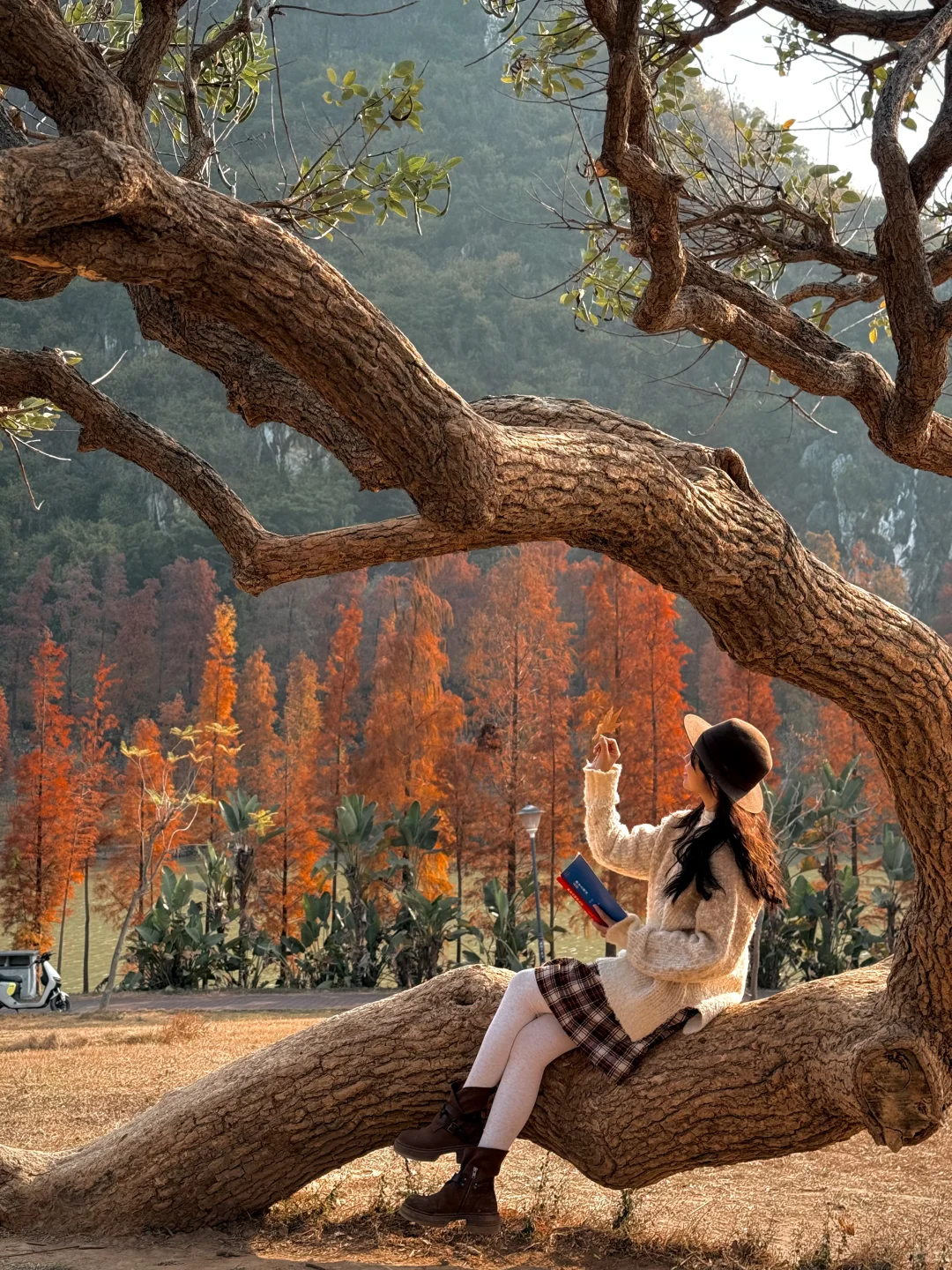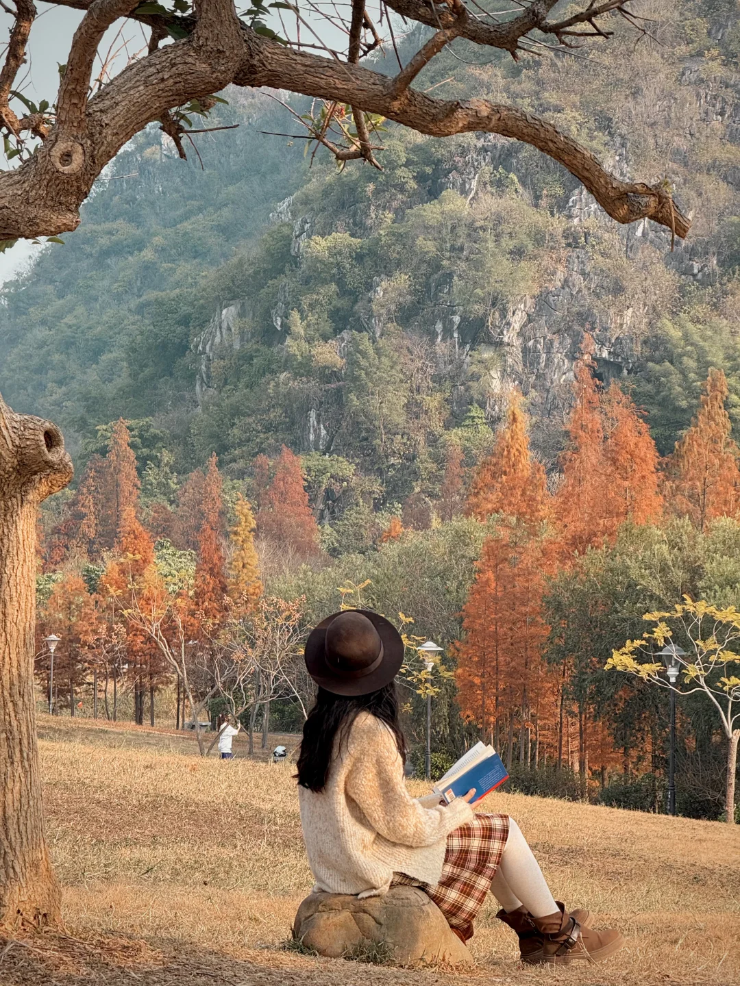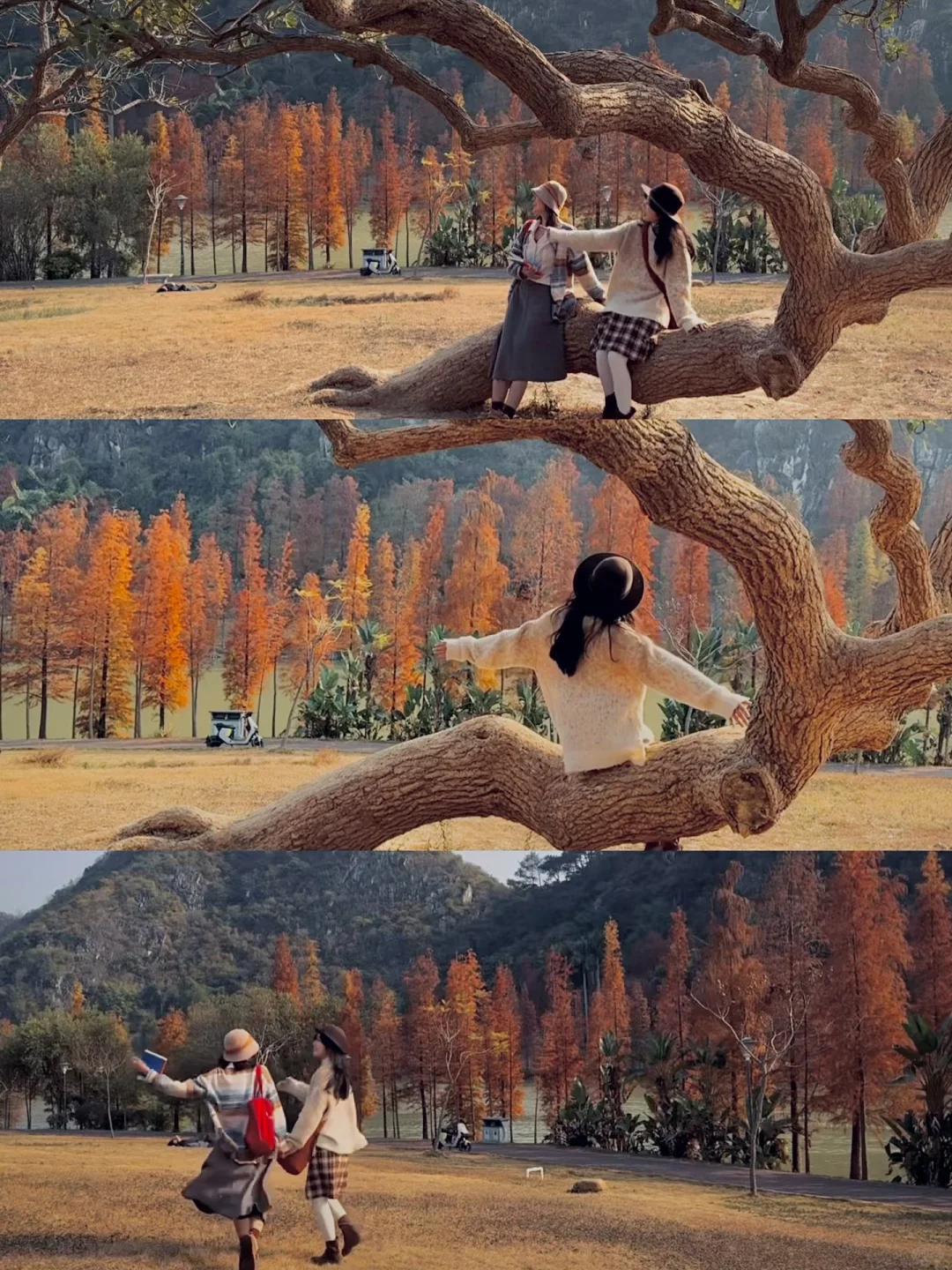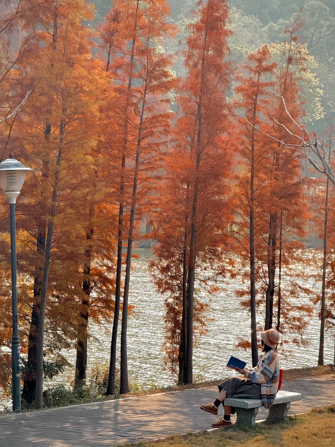 ✔️七星岩的落羽杉现在已经开始逐渐变黄了,根据往年经验,落羽杉在12月底1月初就会彻底变红(去年因为冷推迟在到了1月上旬,照片是1.10号拍的,不过今年整体气温都比较暖和,估计元旦就能看到了),一般红一个月叶子就会掉光,因此观赏期是1月底前,记得来拍照哦~