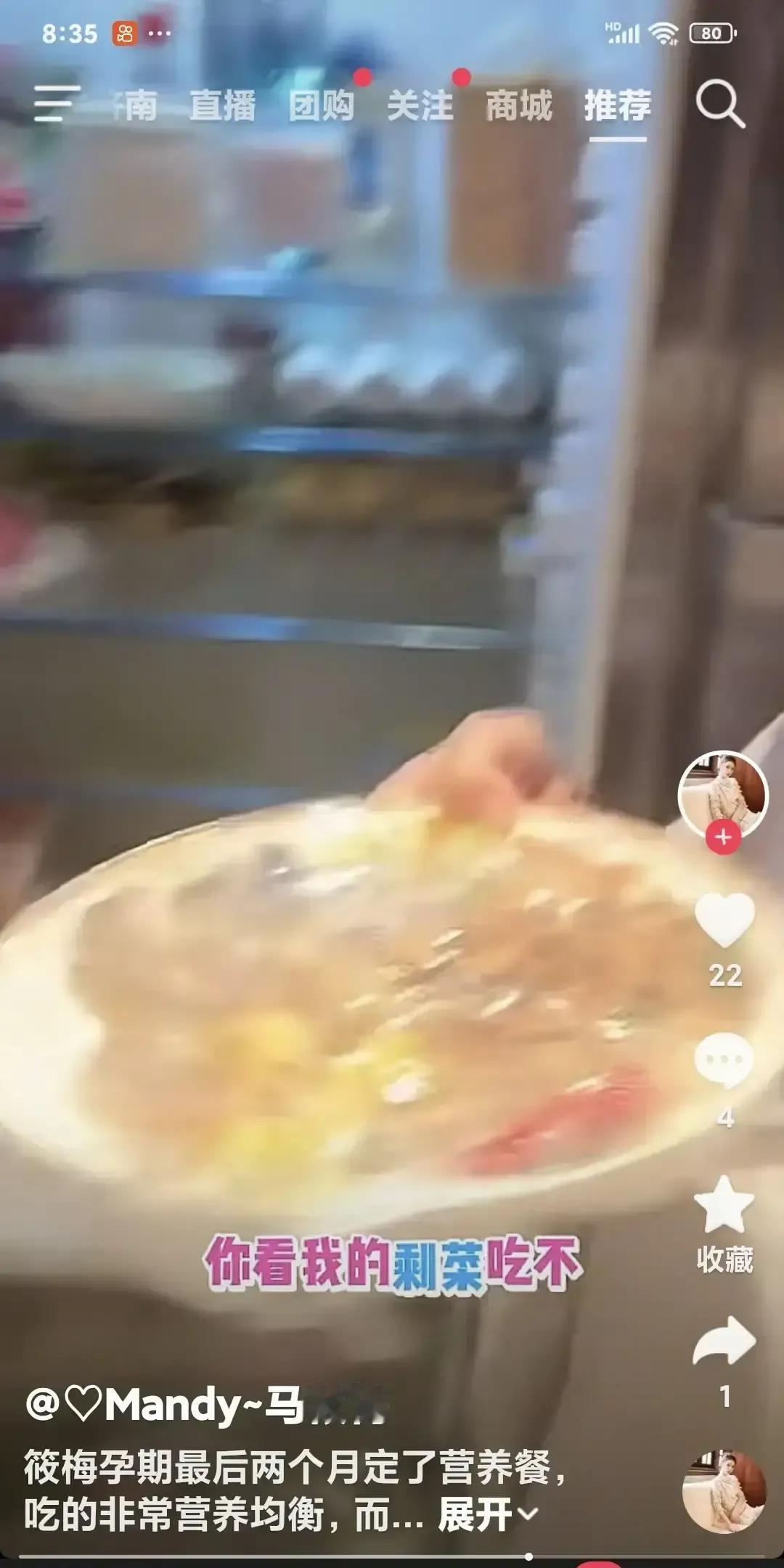 马筱梅在直播间说怀孕最后俩月订的营养餐吃不完,第二天热热继续吃,弹幕瞬间刷满“会