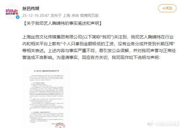 鞠婧祎收入 丝芭传媒发布声明公开鞠婧祎的收入,称“截至2024年5月,公司向鞠婧