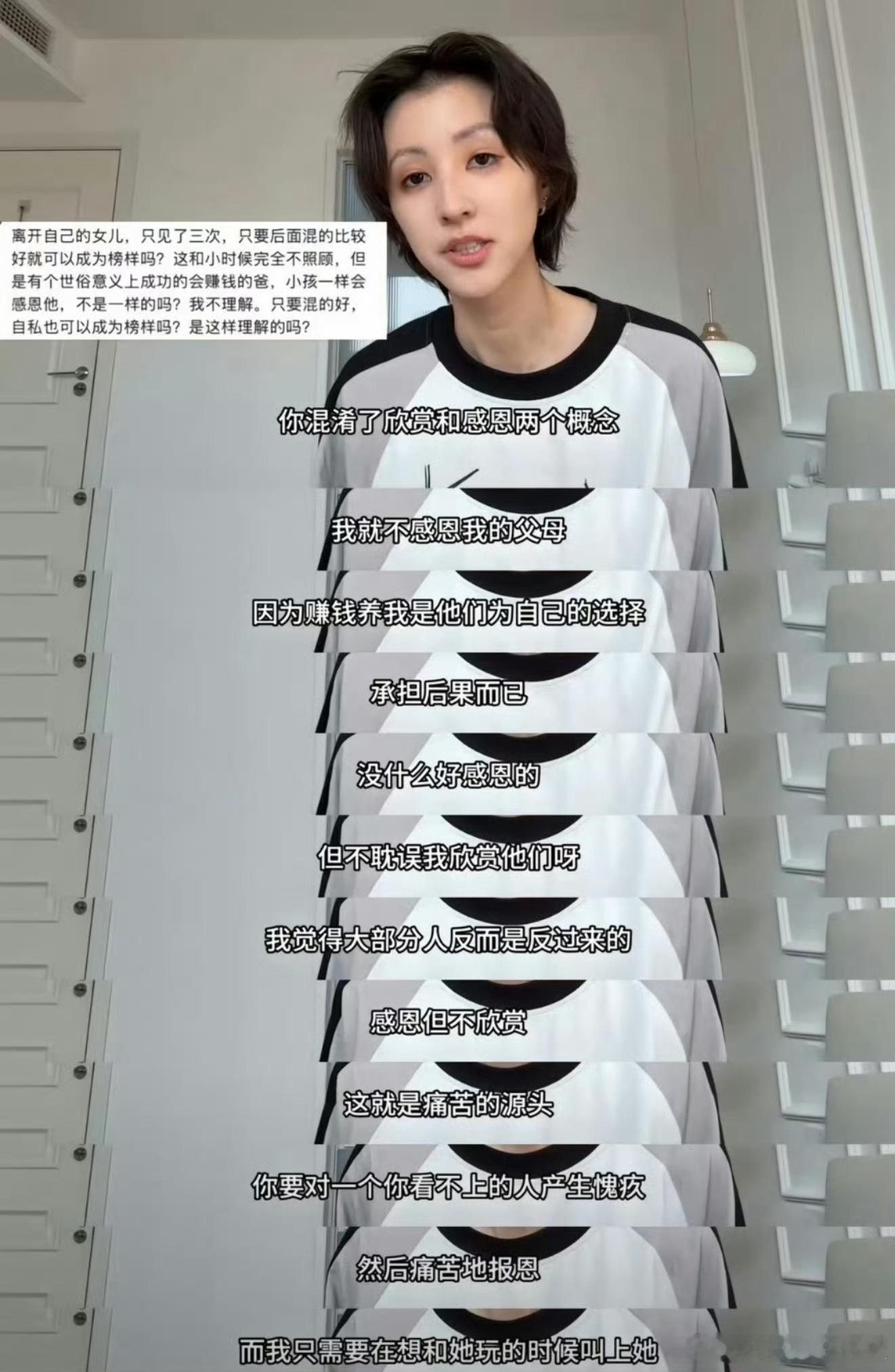 王悦伊的视频我看完了,说实话我没太懂评论区汹涌的怒意到底是在怒什么…根据她拍的vlog 来看,她妈妈确实是个有魅力的女性。Charming 但不负责任,当然可以是一个人的一体两面。王悦伊作为她妈的女儿,都已经愉快地接受了这一点…那看客到底在生哪门子的气呢…我只能说可能每个人在看视频的时候都在疯狂地自我代入吧。有人代入到苦大仇深/她姥姥的视角,觉得人间不值得。有人想起自己不被看到&感恩的经历,开始痛骂白眼狼。有人只是单纯地被刺痛,心想同样在有问题的原生家庭里长大,你凭什么可以这么逻辑自洽这么开心幸福,并且口吐芬芳说你妈根本不爱你;而有的人只是单纯的在妒忌。以上这些情绪,统统可以看作是是自我的投射。而这些跟她想要表达的东西,其实压根儿没什么关系…