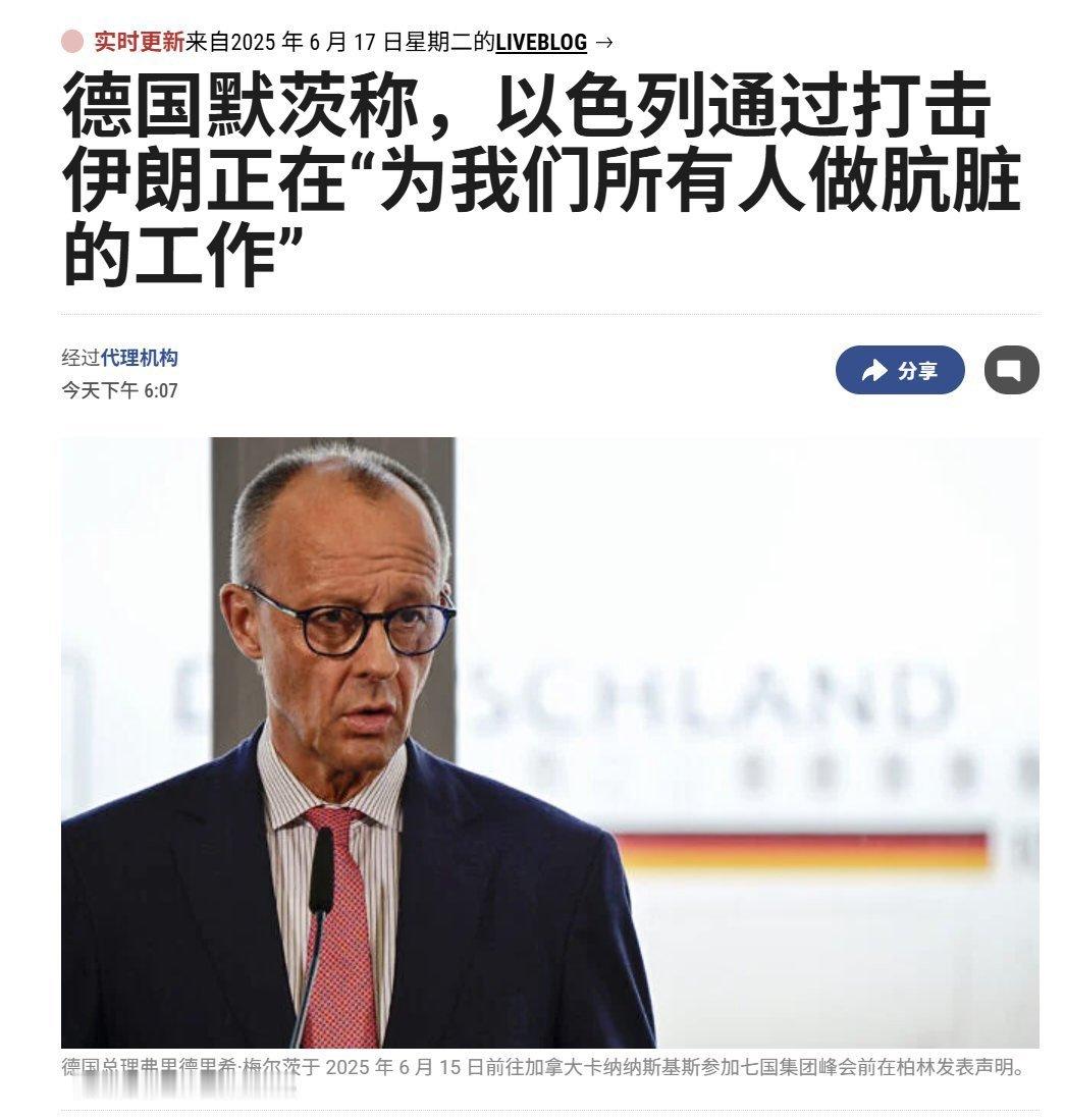 德国总理梅尔茨周一在德乌经济论坛上讲到战争时哽咽着说了一番话(如图1)。当天,欧洲领导人在柏林会晤,为乌克兰和平设定条件,其中包括:任何与俄罗斯达成的协议都必须允许基辅维持80万兵力,允许一支由欧洲领导的多国部队在乌克兰境内行动,并支持乌克兰加入欧盟。俄乌局势最新进展 今年6月份,梅尔茨曾表示(图2):以色列打击伊朗,是以色列为我们所有人在做“脏活”。