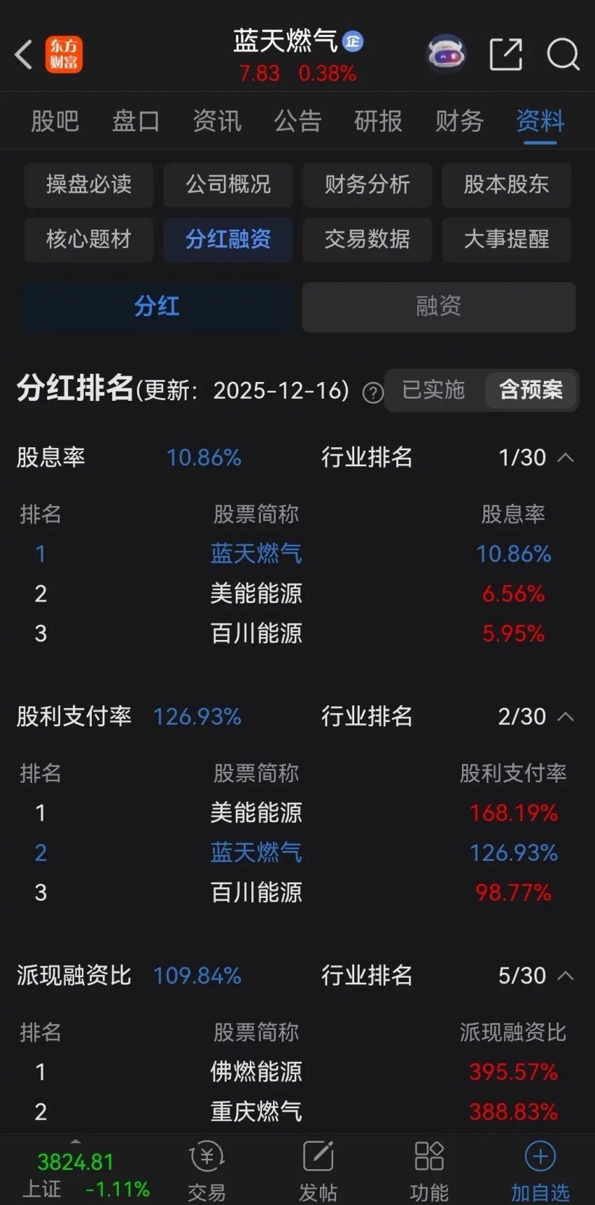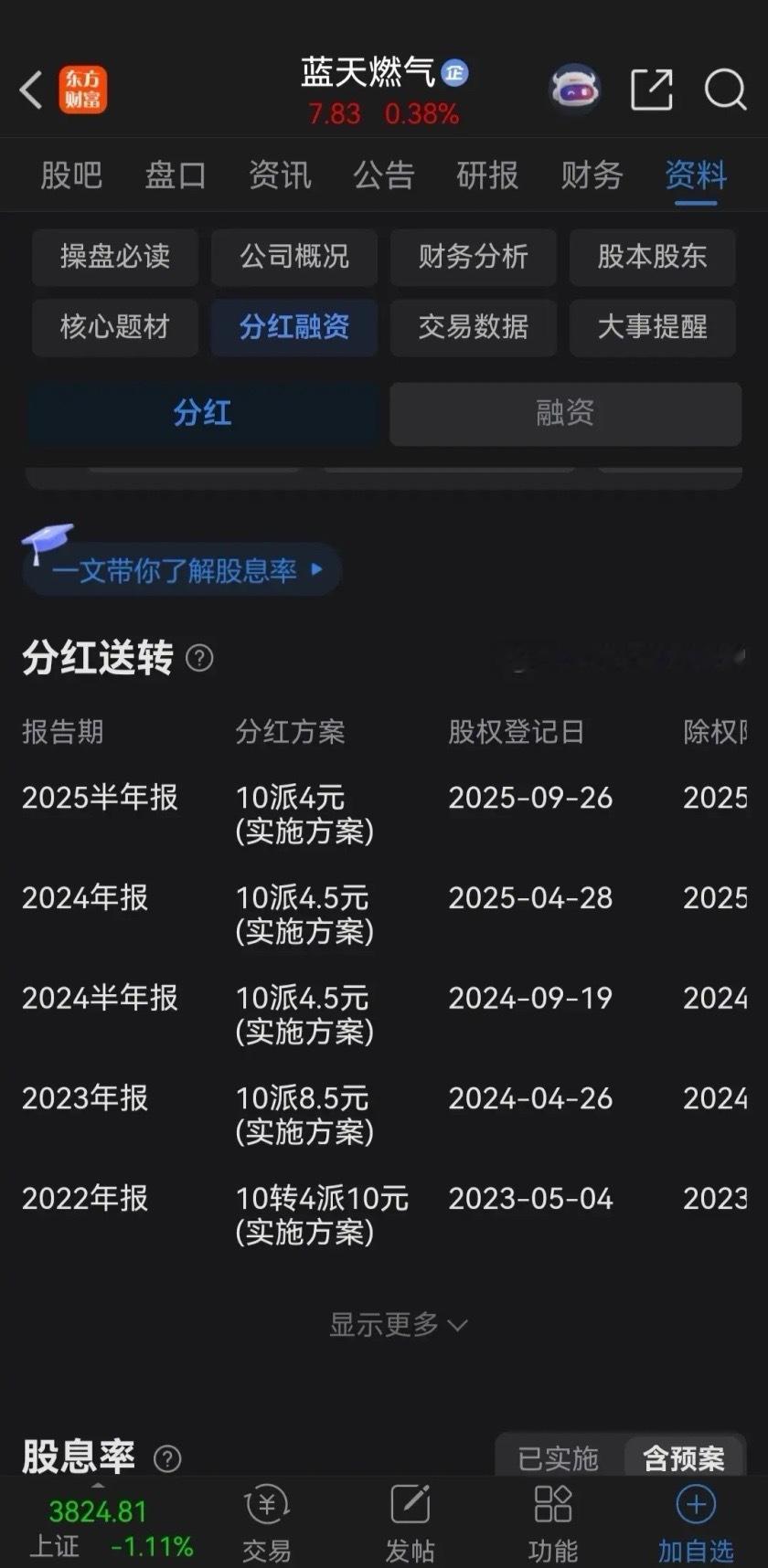 高股息,很多时候都是陷阱!蓝天燃气最近两年,每年都是两次分红,2024年分别是1