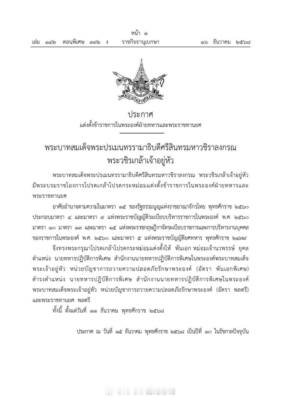 王室王室泰国王室 2025年12月15日,狗哥发布御令,晋升纳瓦潘小舅舅为少将,恭喜恭喜。现任育坤家族的摄政王查勒姆苏克比狗哥还大两岁,等不到老来子上位,不知道纳瓦潘是不是狗哥为老来子准备的摄政王接班人?纳瓦潘小舅舅能力很强,这位“舅爷”本来是要给帕公主打辅助的啊,可惜帕公主没用上,县城大房倒是阴差阳错搭上了这位实权人物,以后肯定好处不少