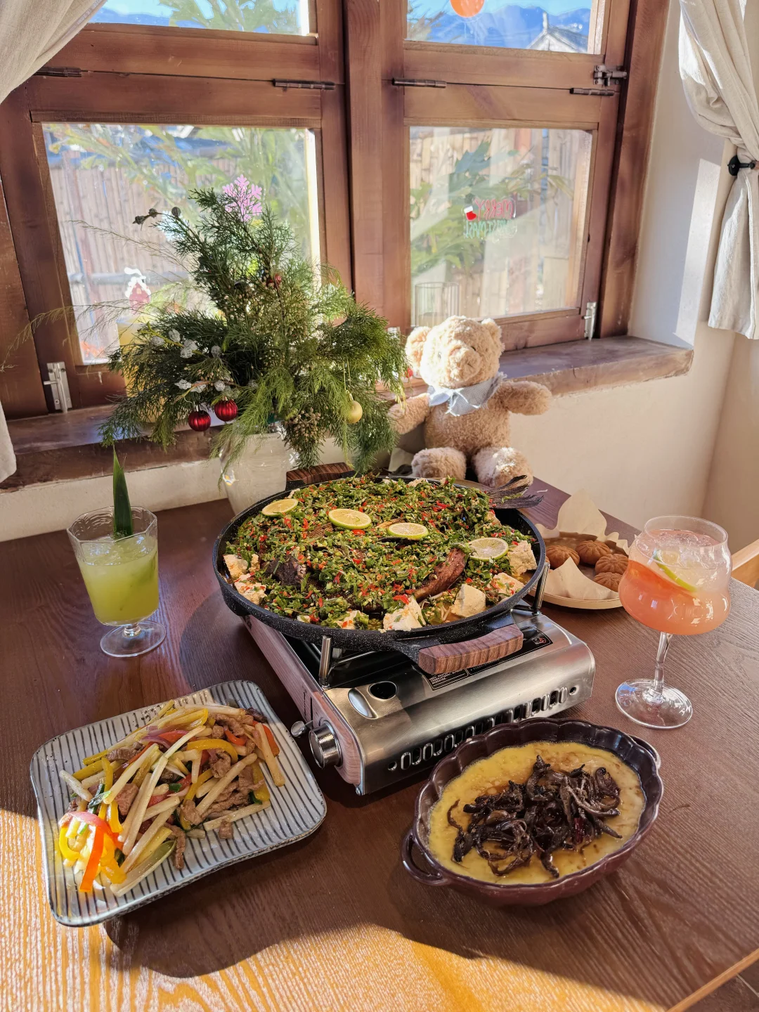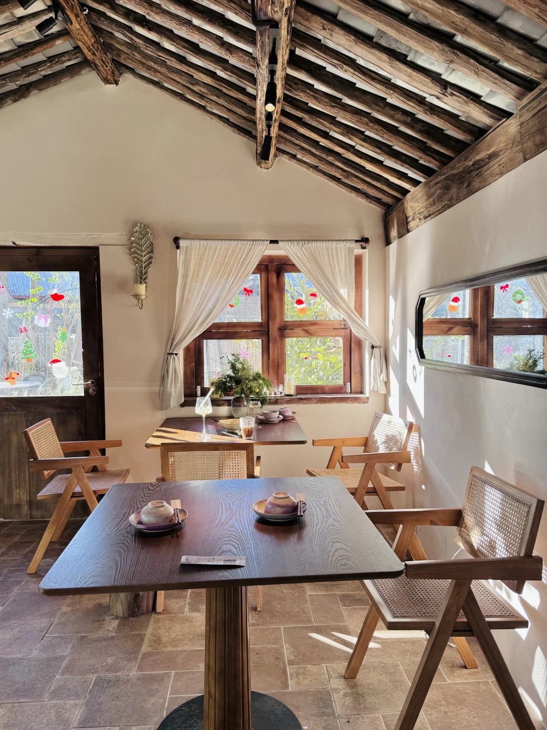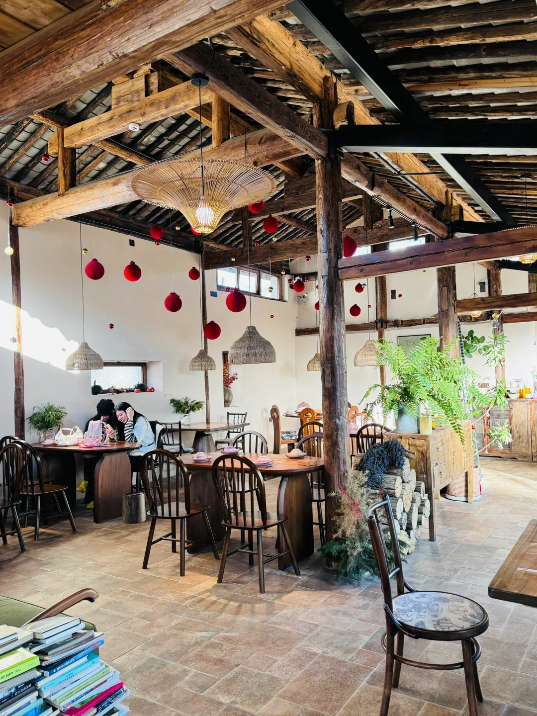 白沙古镇能看雪山的咖啡店很多🏔️ 但是火一点的都要排队 无意中逛到了这家餐厅 它家不仅有下午茶还有正餐🍱 院子环境真的很清迈 重点是它家其实也是可以拍到雪山的呀! 还有一个超美的鱼缸窗口🐠 真是怎么拍都很美 下午茶很不错👍🏼 后来又点了晚餐 还是比较惊艳的 菜式比较偏傣味的 可以尝尝不一样风味的菜式🫛