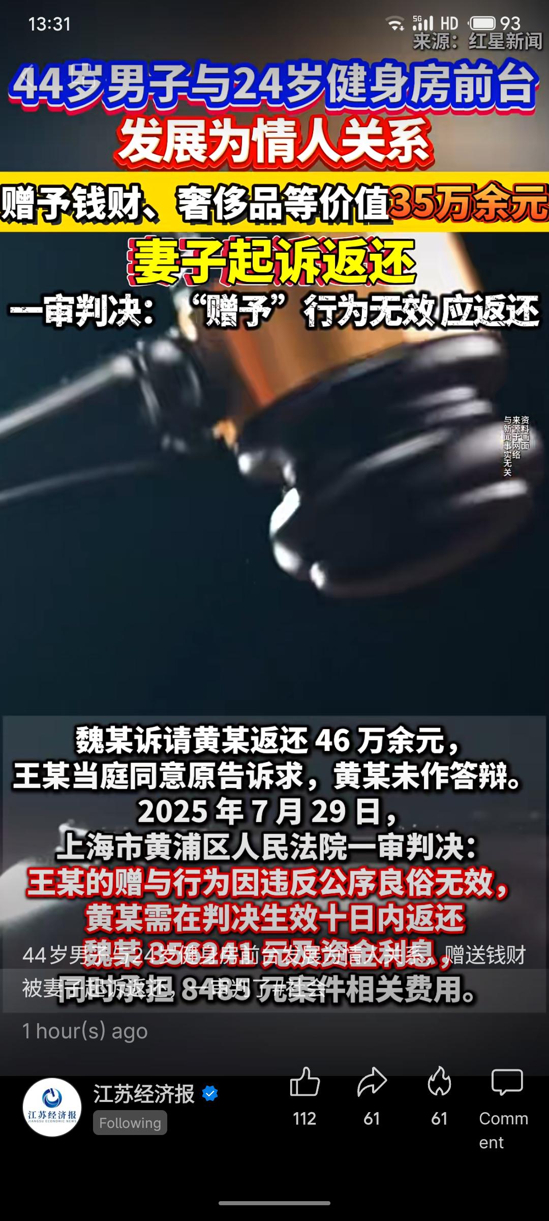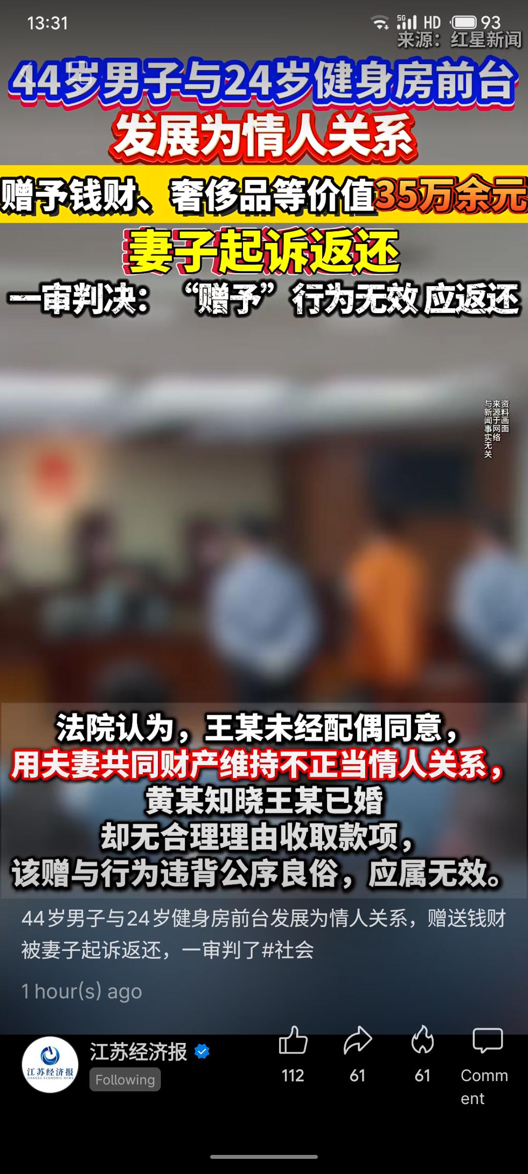 晒图笔记大赛已婚男子王某向情人赠与35万余元财物,其妻子起诉追讨。法院一审判决赠与行为无效,支持返还。核心法律依据在于:该赠与款项属于夫妻共同财产,王某未经配偶同意擅自处分;同时,该赠与以维持婚外不正当关系为目的,违背了公序良俗这一基本法律原则。判决明确了此类行为的违法性,保护了合法婚姻关系中无过错方的财产权益,也体现了司法对社会公序良俗的维护。