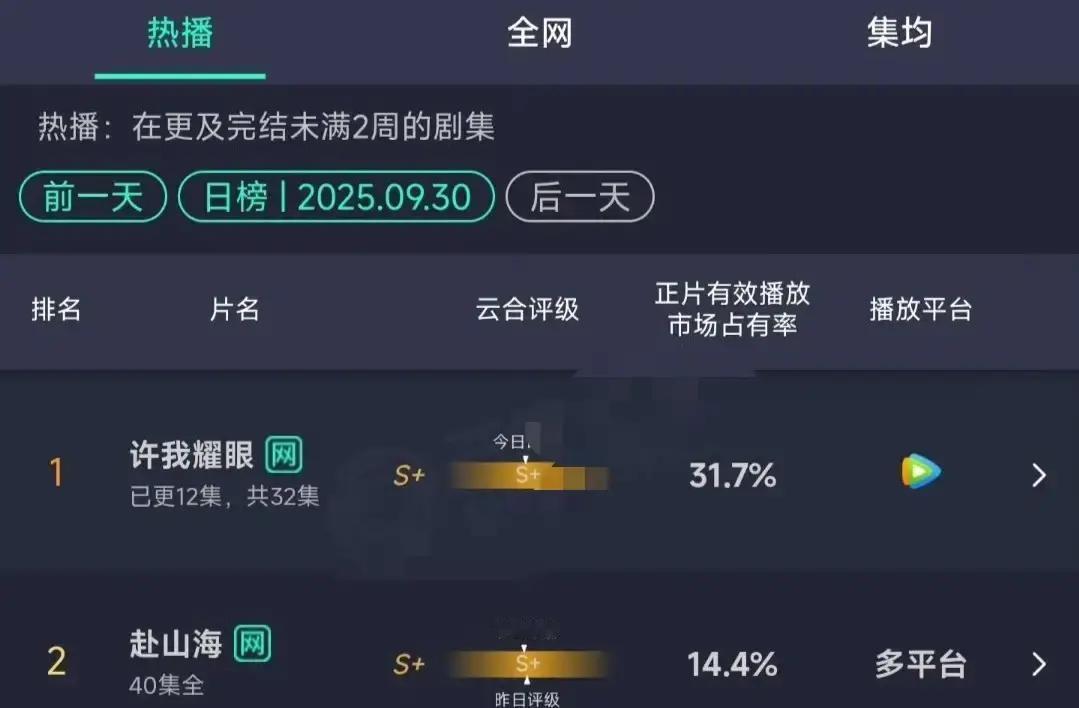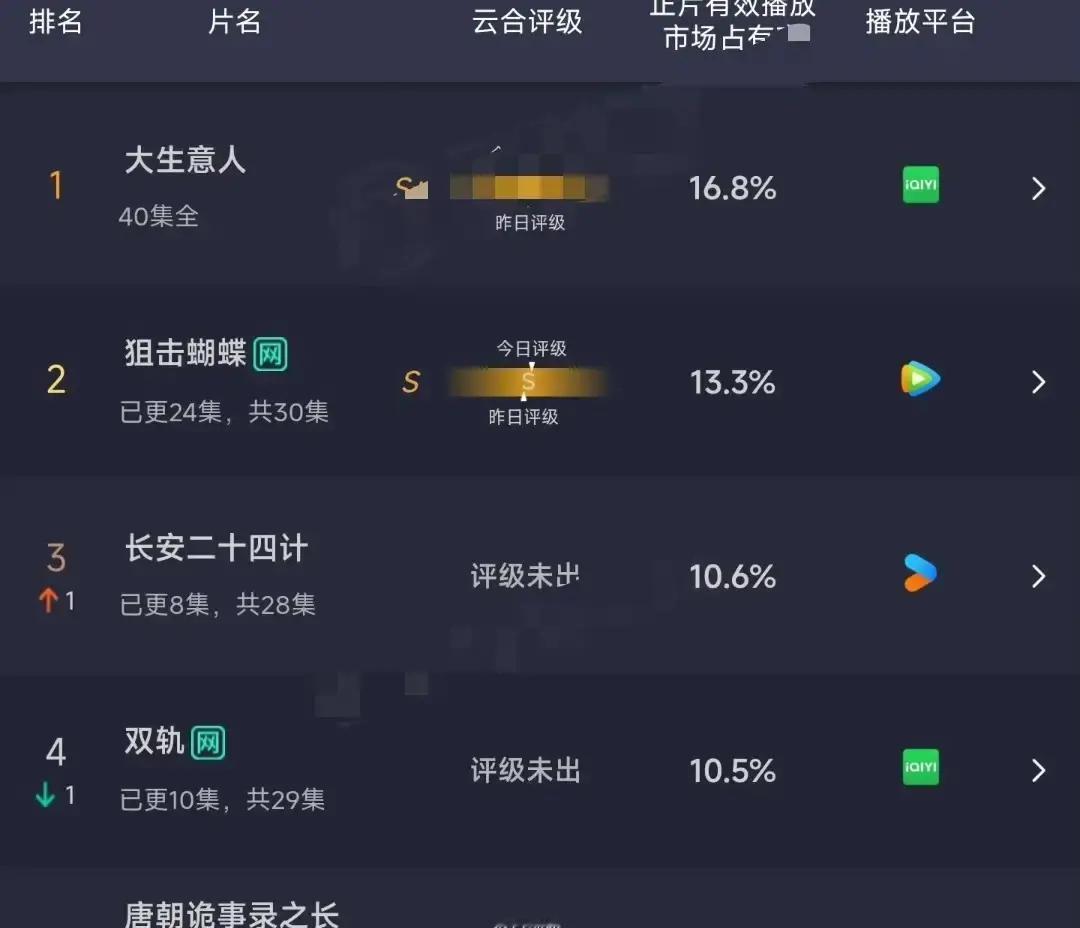 最近几部热播剧打得挺热闹。数据一出来,谁行谁不行一目了然。 《长安二十四计》后劲儿足,反超《双轨》冲到了热度第二。单日播放量都破亿了。人家靠的是扎实的权谋剧情和精良制作,观众现在不好糊弄了。 反观《双轨》,掉到了第五名。故事被说俗套狗血,主演演技也撑不住。市占率连百分之十五都不到,豆瓣评分才五点八。这表现就别硬蹭了。 真正的赢家是《许我耀眼》。开播就霸榜,市占率接近百分之三十。赵露思和陈伟霆搭档顺眼,剧情也引发共鸣。人家不搞擦边营销,全靠内容说话。 现在观众聪明着呢。光靠流量明星或狗血剧情已经行不通了。内容好不好,大家心里有杆秤。《双轨》该想想怎么把故事讲好,而不是总盯着别人。