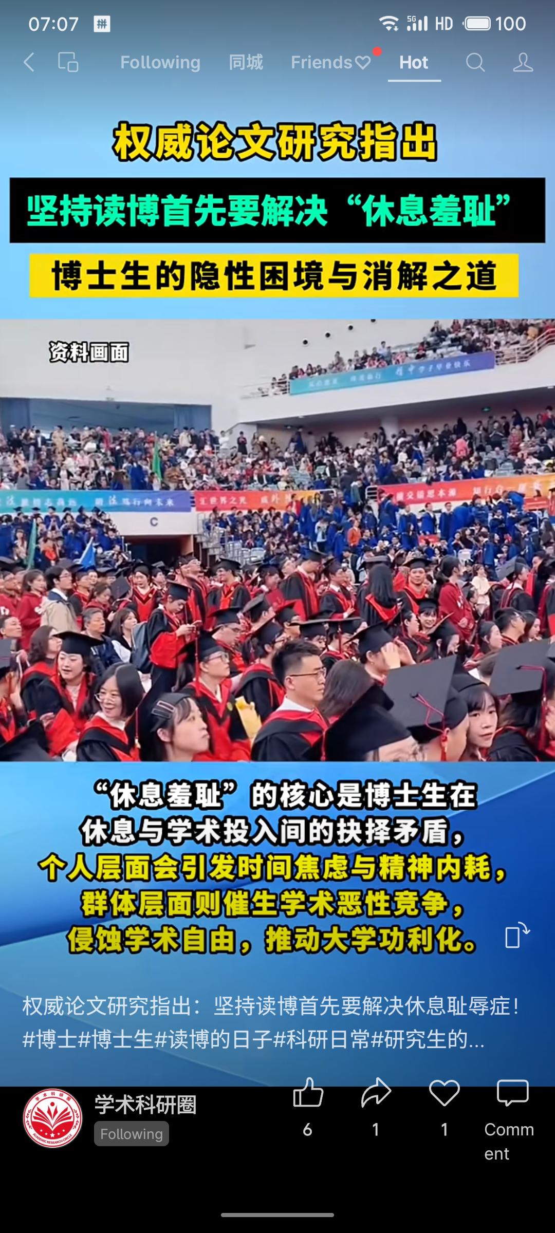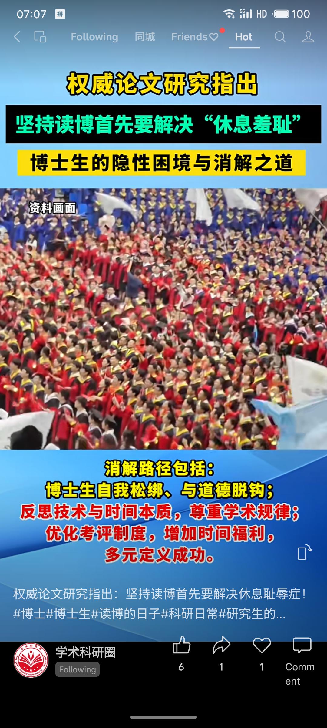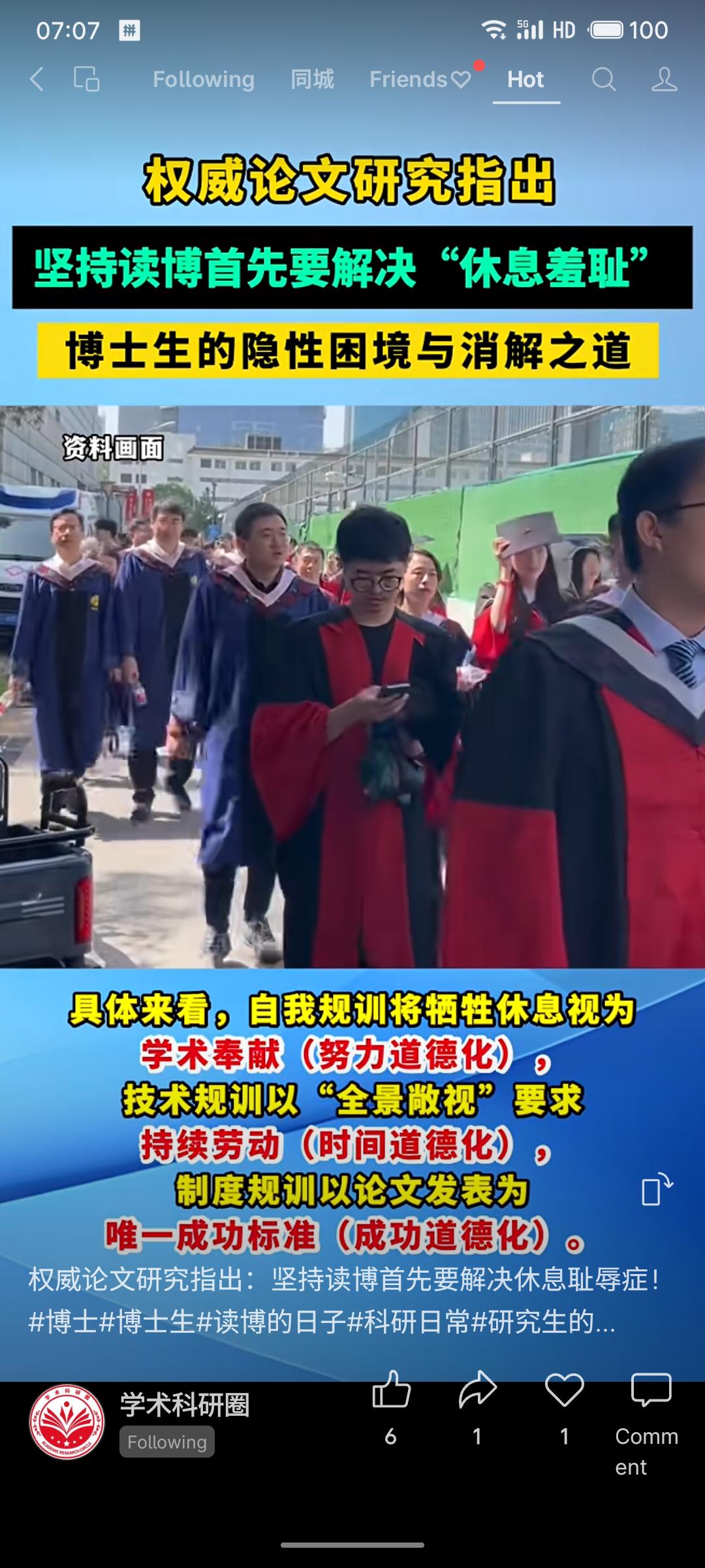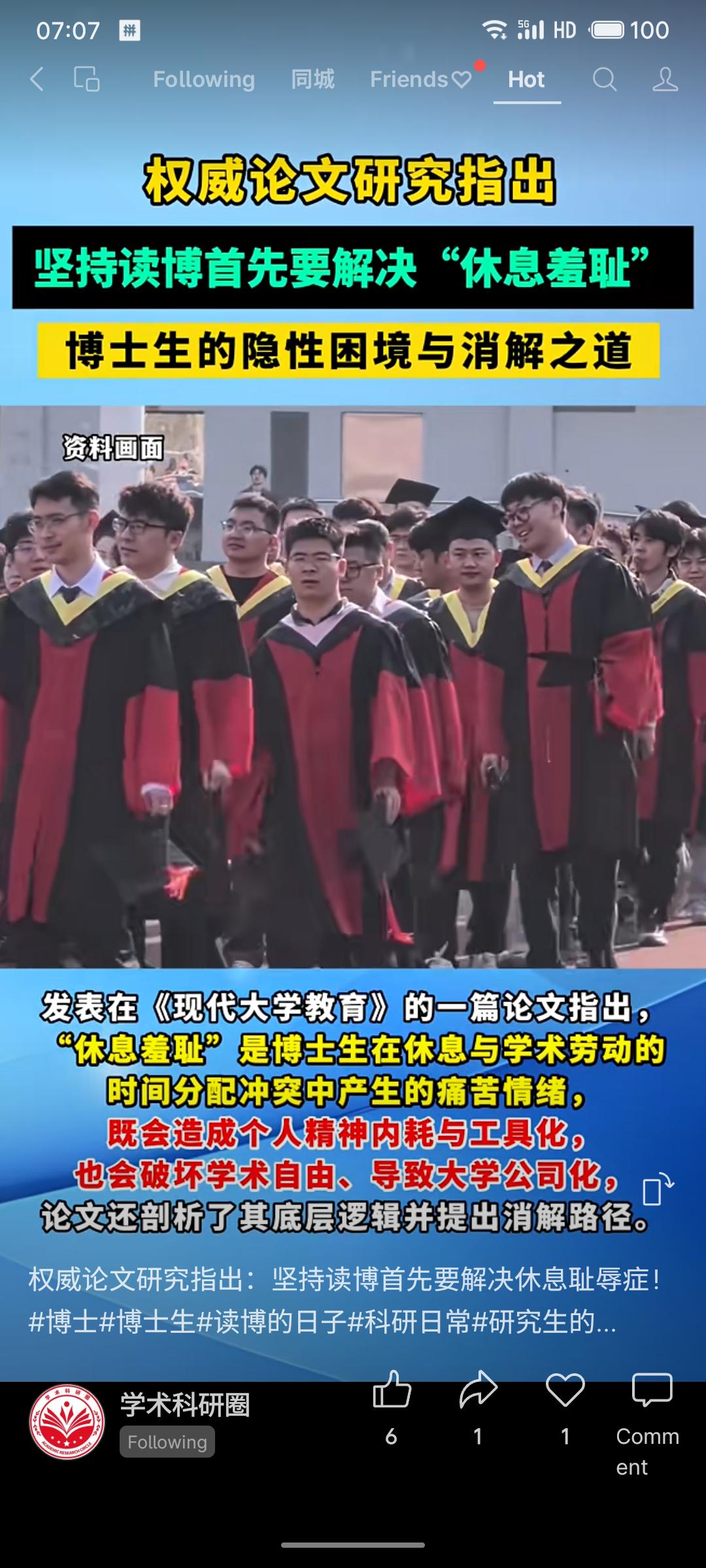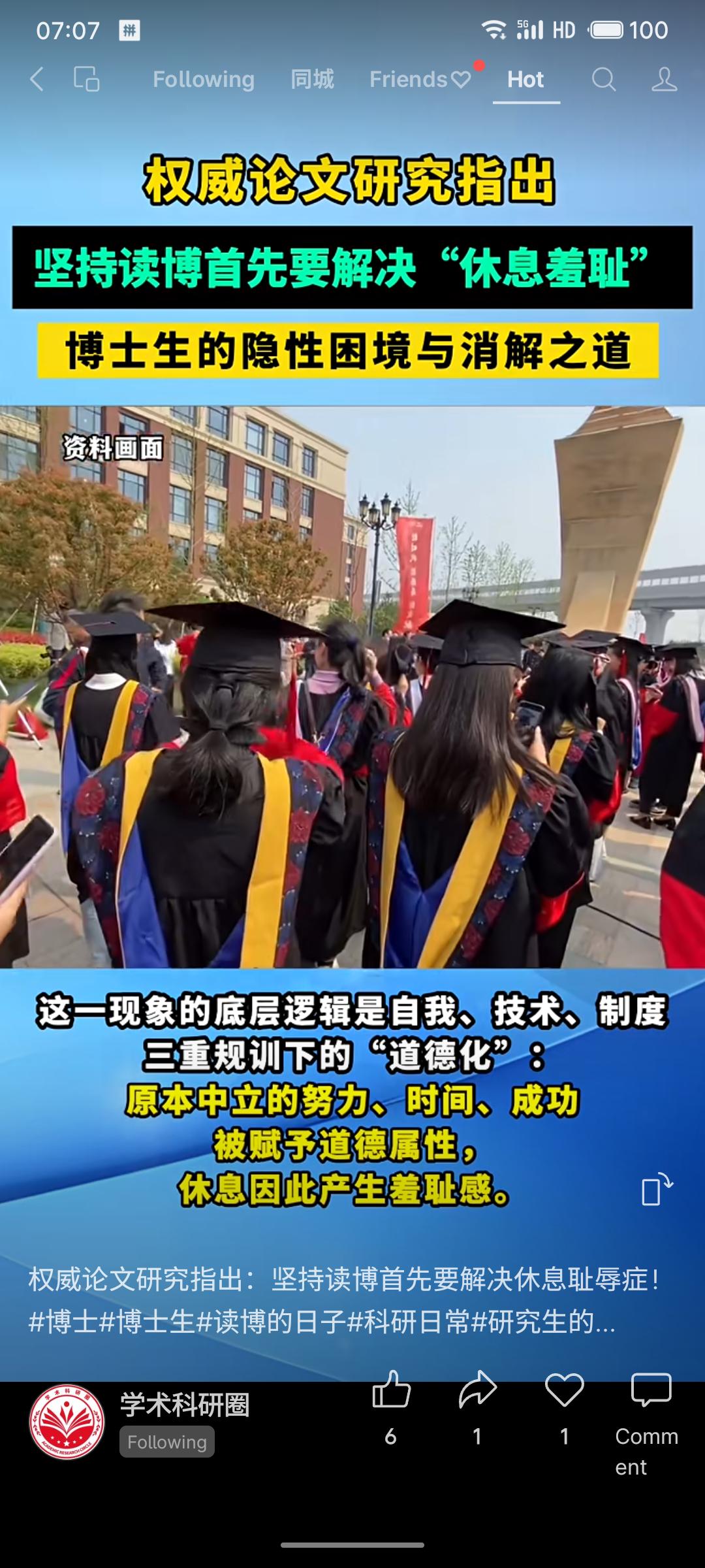 “休息羞耻”揭示了博士生在自我、技术与制度三重规训下面临的隐性困境——休息被道德化为懒惰,持续劳动被奉为信仰。这不仅消耗个体心力,更助长学术功利化。破除这一困局,需从个人松绑与制度革新双向着手,让学术回归探索本质,而非异化为无休的竞赛。