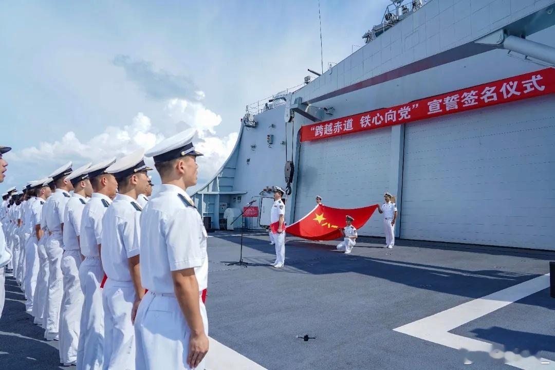 989编队返航中在卡里马塔海峡跨越赤道,从南半球回到北半球。各舰举行了跨越赤道宣誓签名仪式。再往前就要进入南海了。