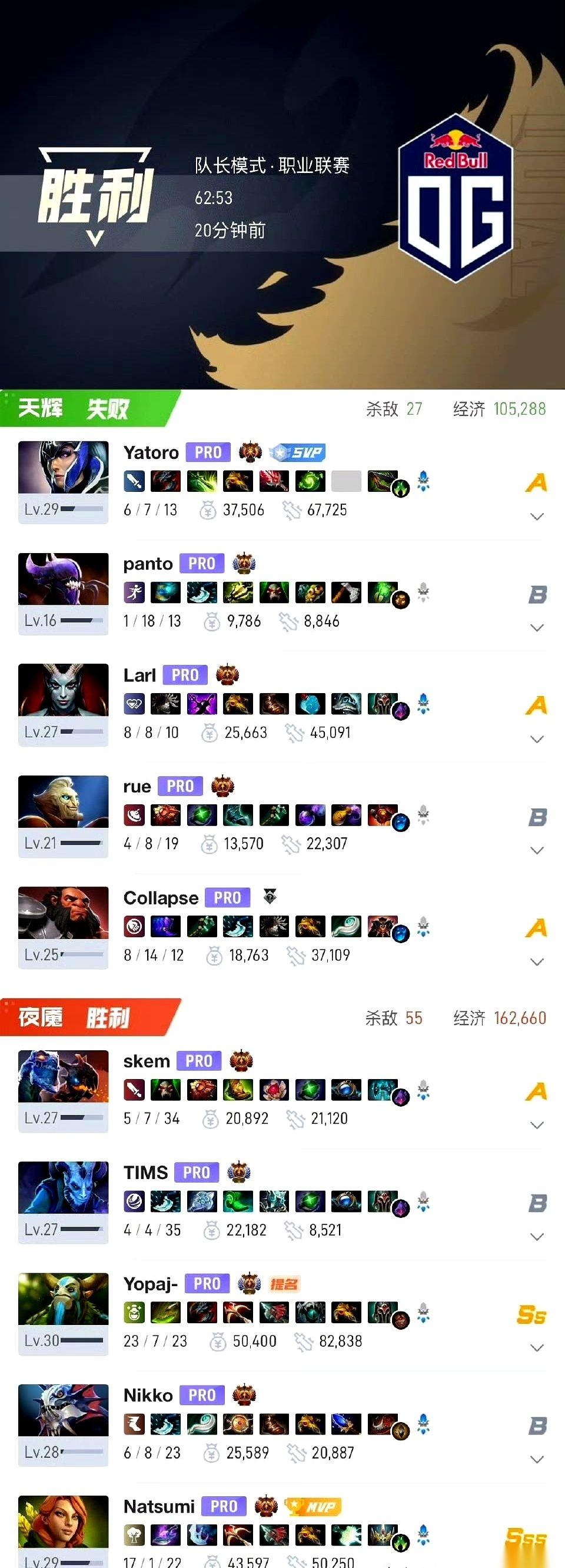 一觉醒来,天都变了。 雪碧,那个两届TI冠军,被一个新组的OG,干了个2比0。 第二把,经济领先55K,人头55比27。 这哪是比赛啊,这是公开处刑。 我揉了揉眼睛,这打的是DOTA2吗?怎么看着像RPG地图里大神在屠杀小怪? 就那个风行,你敢信?当大哥打,把鸭头肉的TB和露娜,追着满地图跑,一点脾气没有。 恍惚间,我好像穿越回了2016年。 那个“万物皆可C”,你永远猜不到他们下一手要掏出什么绝活儿,不讲道理,见面就是干你的护国神翼…… 那个味儿,是不是又回来了? 这支新OG,四轮打完,4-0,全胜。 复仇了,速通了,还把上届冠军按在地上摩擦了。 这已经不是黑马了,这是来掀桌子的。 可能很多人还在争论这阵容合不合理,这打法有没有未来。 但对我这种老dotaer来说,去他娘的合理。 就这种不把你当人,用你想都想不到的套路把你打懵,打服,打到你怀疑人生的DOTA,才叫他妈的DOTA啊! 太好看了,真的。