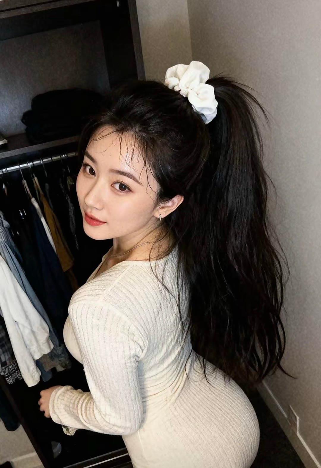姐姐这造型太绝了!高马尾配白色大肠发圈,元气又清新。紧身针织长裙将曼妙曲线完美勾勒,腰臀比堪称 perfection。回头时眼波流转,红唇添了几分妩媚,纤细脖颈与精致锁骨美得惊心。这身姿这气质,是灵动与性感的完美融合,让人一眼沦陷,魅力值直接拉满,美到骨子里!什么才是一个女人的魅力?