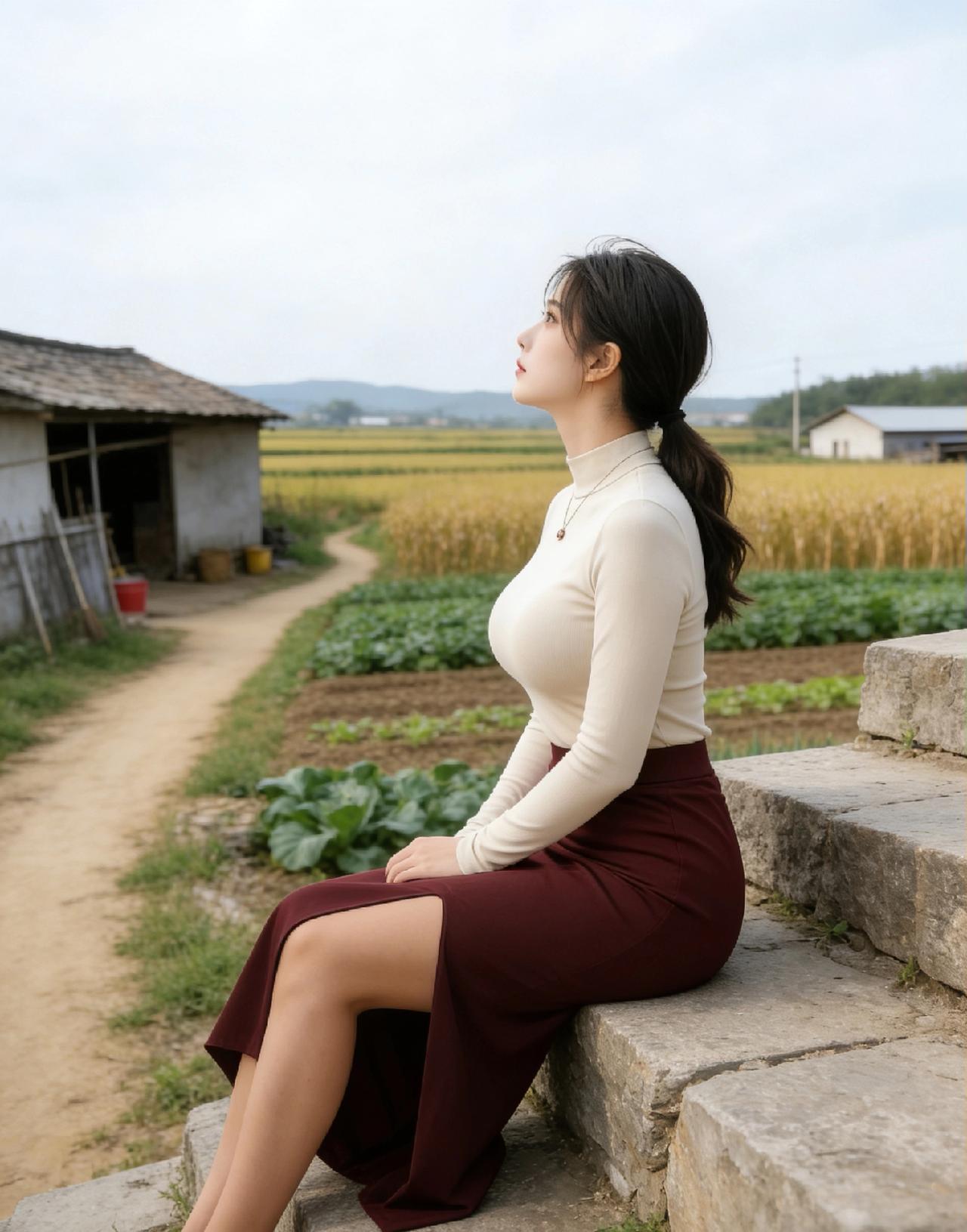 姐姐在乡间小路上美得像幅画!米白高领衫勾勒出纤细腰肢,酒红开叉长裙将曼妙曲线衬得淋漓尽致,腰臀比绝了。高马尾随步伐轻晃,侧颜清丽动人。她背对镜头时,裙摆随风微扬,优雅中透着灵动。这身姿与田园风光相融,既显温婉气质,又藏性感魅力,真·行走的风景线!