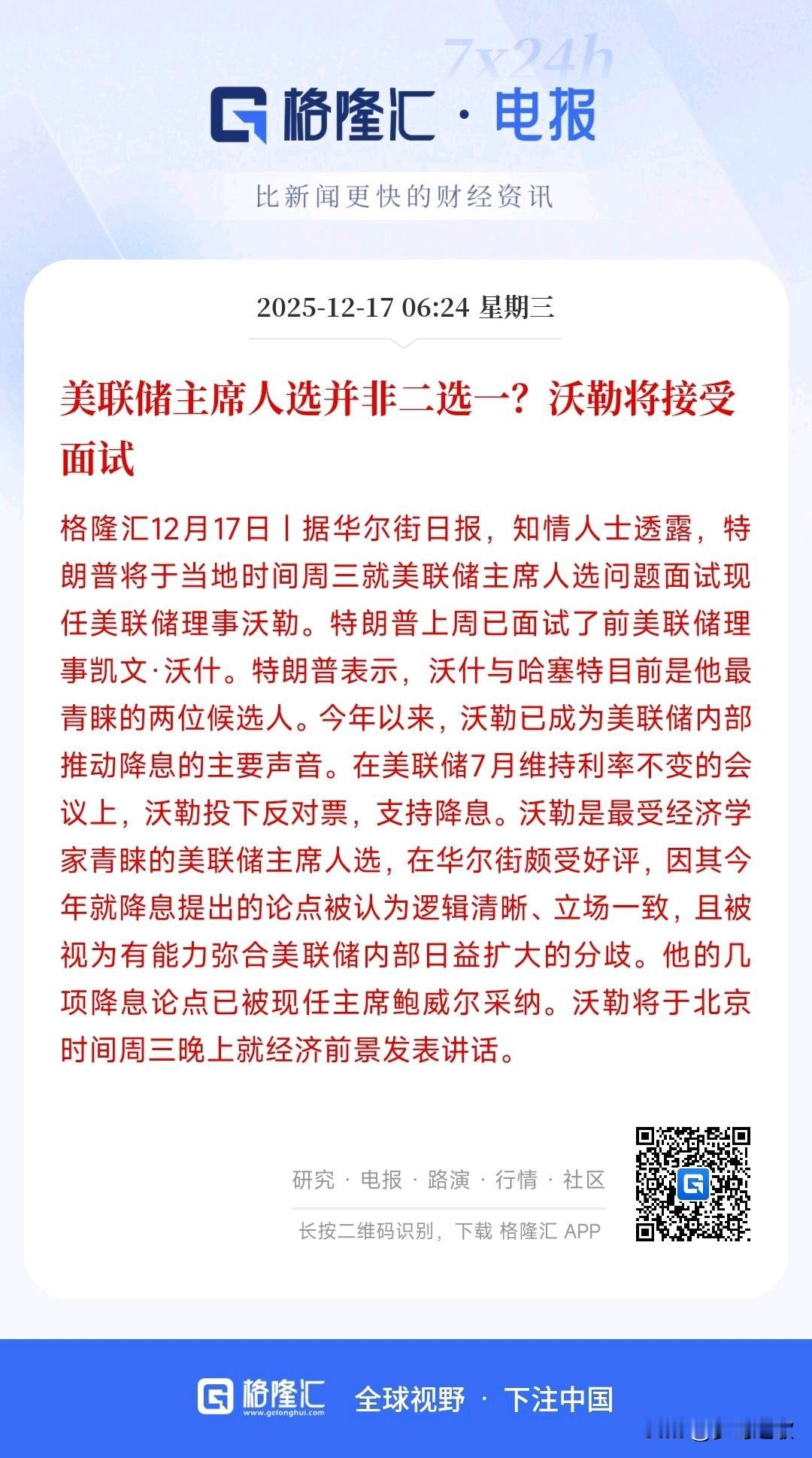 美联储新主席已经开始面试了,打不管是谁对资本市场都是大利好 特朗普现在青睐的两个人沃什和哈塞特都是特朗普的绝对支持者,主张的都是激进的降息周期,在最短的时间内把联邦利率降到1%左右。 现在的利率3.25%,预示着未来有2%的降幅。这对资本市场来说就是超级大放水,由于美元是通用货币,这次降息也会促使国际资本市场的暴涨。这无疑是给所有人增加财富的机会。 鲍威尔的任期将于2026年10月结束,但早期有传言鲍威尔可能会提前离任。