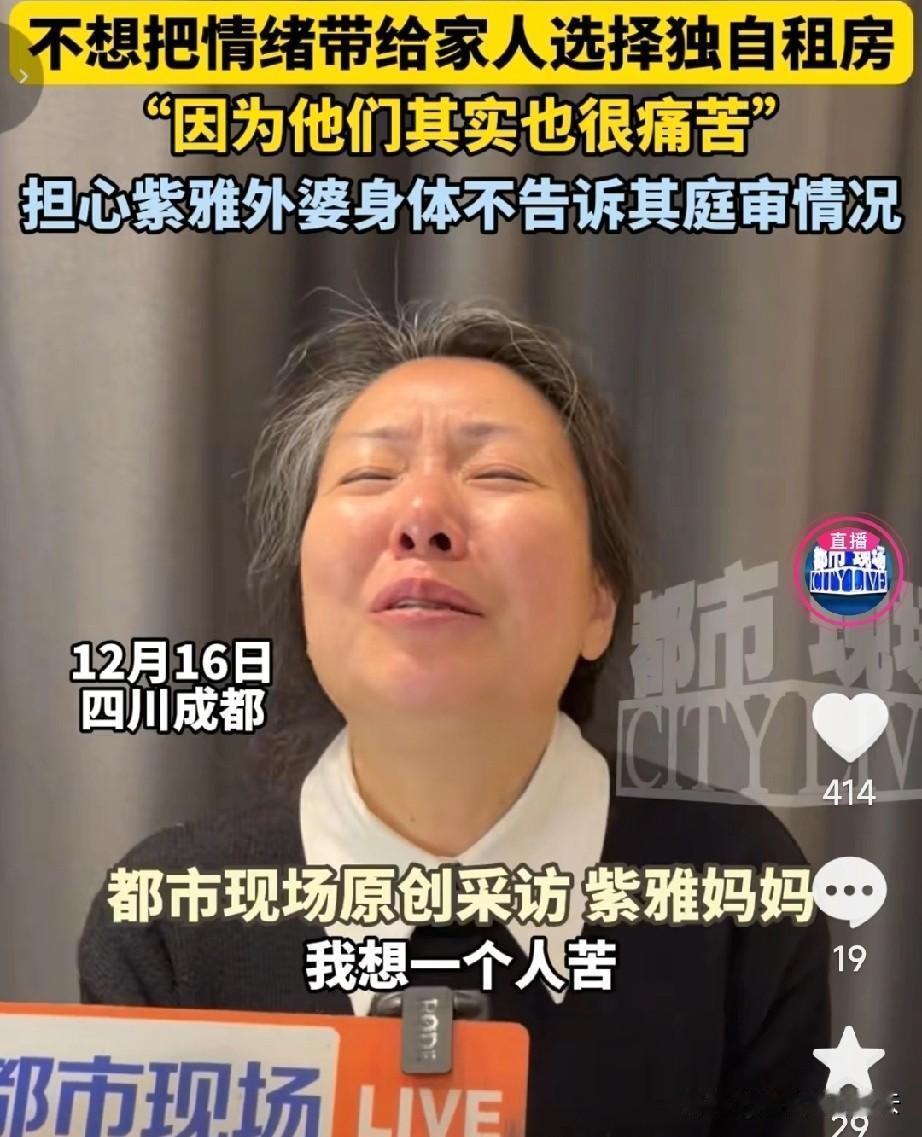 太不容易了。王紫雅妈妈说案子结束后,她会一个人去山区支教,通过帮助那里的孩子,帮国家做点贡献,也慢慢走出丧女之痛。 我觉得别的受害者至少还好一点,可能还有爱人。可是紫雅妈妈这些年来太不容易,年轻时丧夫,一个人不辞辛苦把女儿培养的这么优秀,可惜她还没看到女儿穿上婚纱,还没享受当姥姥的快乐,女儿就在自己家里被人杀害。这种锥心之痛是外人无法体会的。 紫雅妈妈还有妈妈,她的母亲也年纪大了,她不忍心让母亲陪着她一起痛苦,也不想她的悲伤感染着自己周围的亲人。所以女儿出事后,她一直独自在外租房住着。 这么善良的一对母子为什么让他们遭此厄运,她们没有做错什么啊!希望紫雅的案子能取的好的结果,也让这个善良的母亲早点歇一歇。
