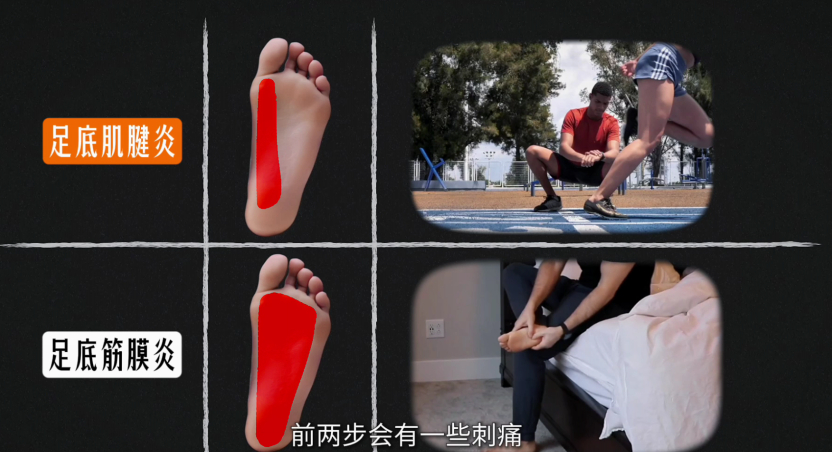 足底疼痛 很多人走路走多了后,足底就会出现疼痛,误以为自己是足底筋膜炎,但其实会有其他问题也会引起足底疼痛。今天先来讲讲,常与足底筋膜炎混淆的问题👇🏻👇🏻1.【足底肌腱炎】a. 𧿹长屈肌肌腱(图1)b. 𧿹短屈肌肌腱(图2)很多职业运动员需要长期奔跑和变向移动,需要足部过多的稳定就会导致这些肌腱产生慢性无菌性炎症。足底肌腱炎和足底筋膜炎区别(图3)✅位置:——足底肌腱炎偏向某侧——足底筋膜炎偏向整体✅症状:——足底肌腱炎在运动后出现疼痛——足底筋膜炎在晨起下地后出现疼痛2.【足底神经卡压】(图4-8)a.足跟烧灼感:Baxter神经卡压b.足底内侧麻木不适:胫神经问题c.足背偏内侧:隐神经问题d.足背外侧:腓肠神经问题e.足背中间:腓浅或腓深神经问题需要根据不同位置的疼痛和疼痛性质来鉴别神经卡压问题。3.【足跟脂肪垫炎】症状位置主要在足跟区域,和体重过大、重心过度后移有关(图9)当然,根据位置更多是初步判断,具体的损伤情况,还得具体评估查体来分析诊断。你们还遇到过什么足底问题,可以来下方留言讨论健闻登顶计划足底筋膜炎