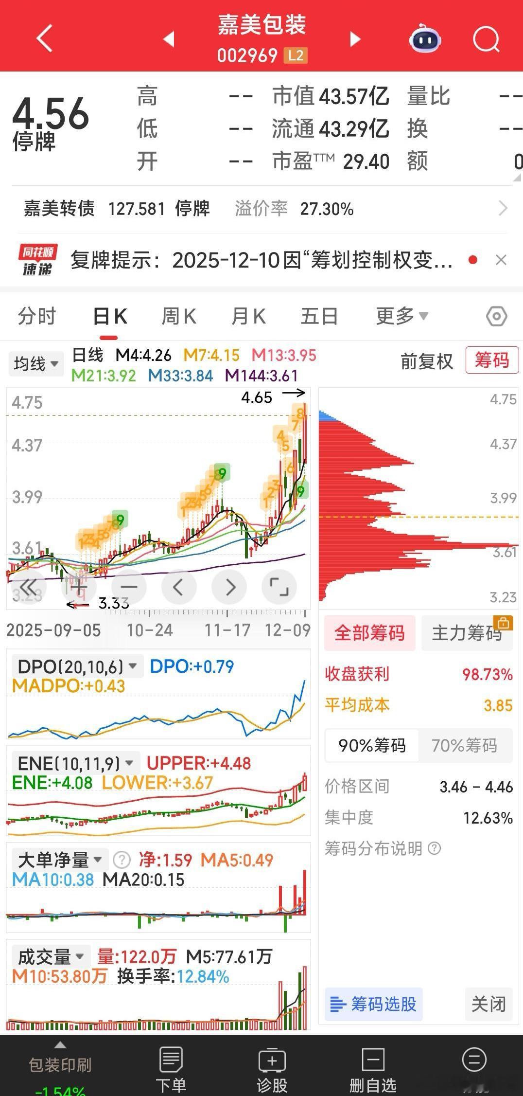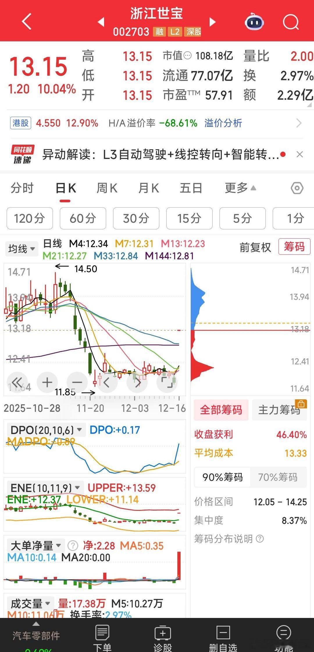 【仅看三牛】仅看三牛:胜通能源,浙江世宝,嘉美包装。宁可错过其它,仅关心跟踪的三牛。有机会干一牛,无机会大不了不建新仓。手中票,当持股预期消失时,就及时减仓,不恋战。