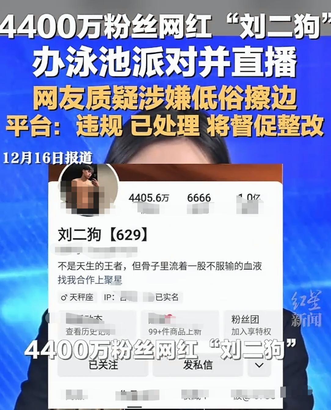 4400万粉主播触红线,直播行业别再为低俗买单! 作为一名在今日头条发文超500篇的创作者,从网络上看到刘二狗泳池派对直播因低俗擦边被平台处理的新闻,心里满是感慨。 4400万粉丝的头部主播,本应扛起内容创作的标杆,却为了流量铤而走险,用衣着暴露、肢体暧昧的画面博眼球,甚至直播间里还有不少青少年观众。 这种行为不仅突破了内容底线,更会对未成年人的价值观造成不良引导,实在不该。 直播行业里总有人抱着“低俗即流量”的侥幸心理,靠擦边球博关注。 可这样的流量终究是短期的,既会遭到网友的抵制,也逃不过平台的处罚,更会让整个直播行业陷入“劣币驱逐良币”的困境。 作为内容创作者,我始终相信,真正能长久的流量,从来不是靠低俗擦边,而是靠有价值、有温度的内容。 不管是直播还是图文创作,守住内容底线,传递正向价值,才是立足之本。 也希望所有同行都能警醒:别让一时的流量诱惑,毁掉自己的职业道路,更别让低俗内容,拖垮整个行业的口碑。 让我们一起拒绝低俗擦边,用优质内容撑起创作的天空! 你觉得直播行业该如何彻底杜绝低俗擦边现象?欢迎在评论区留下你的看法! 点亮〔收藏和赞〕让健康和爱都流向你