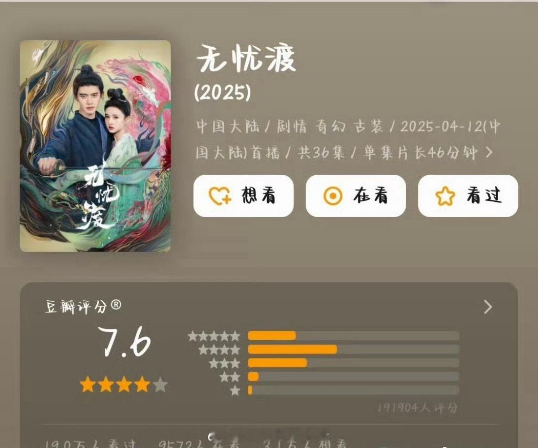 任嘉伦 宋祖儿无忧渡豆瓣评分涨到7.6了