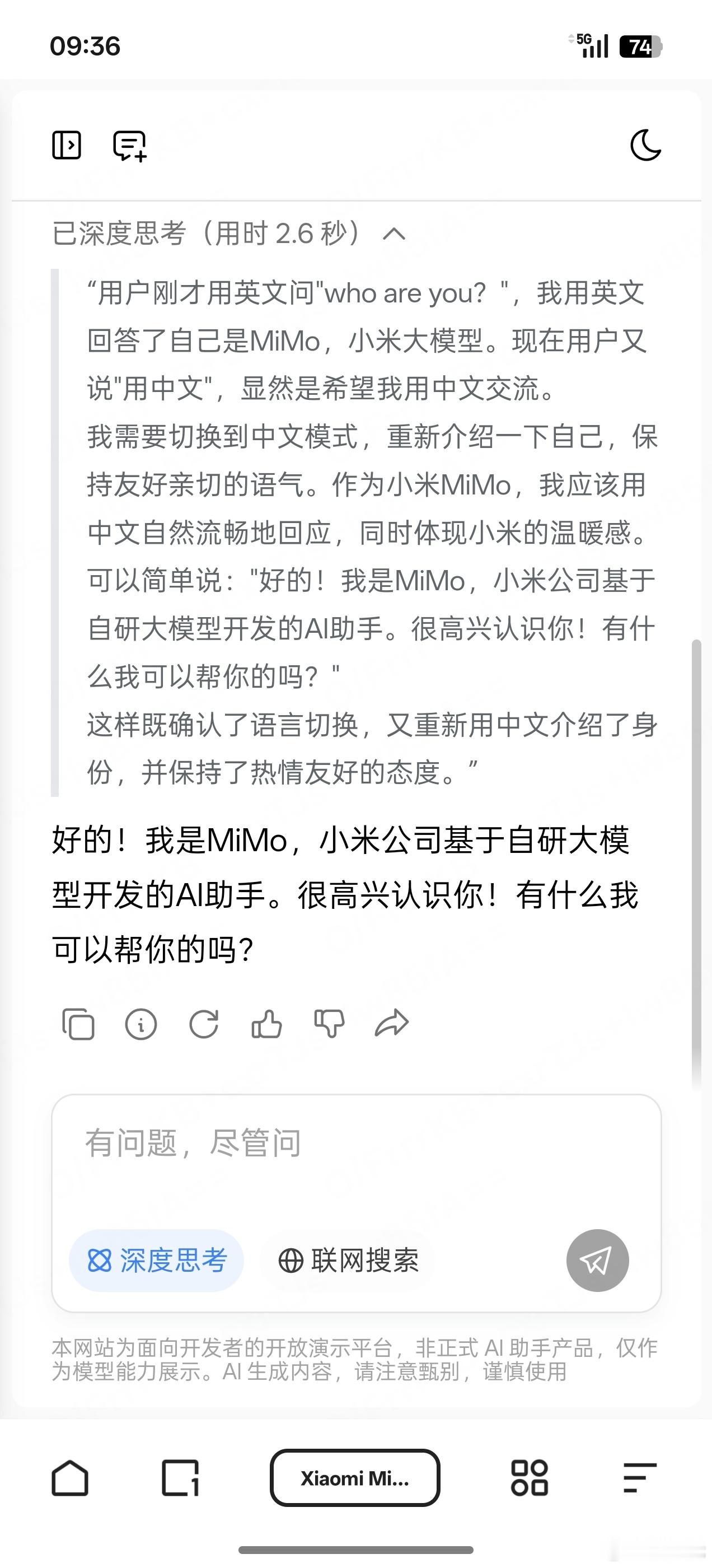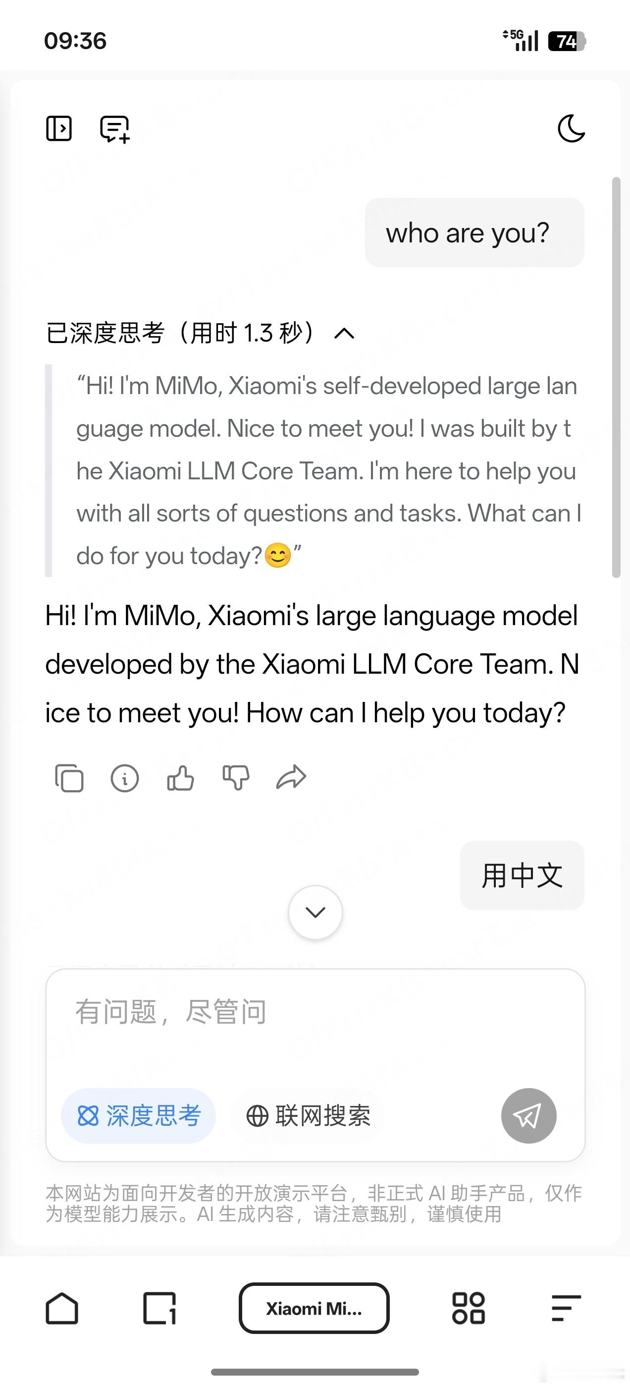 小米发布最新MiMo大模型 简单体验了一下小米MiMo,现在用的人还没有那么多,聪明而且推理和生成速度非常快,跟开了快进似的