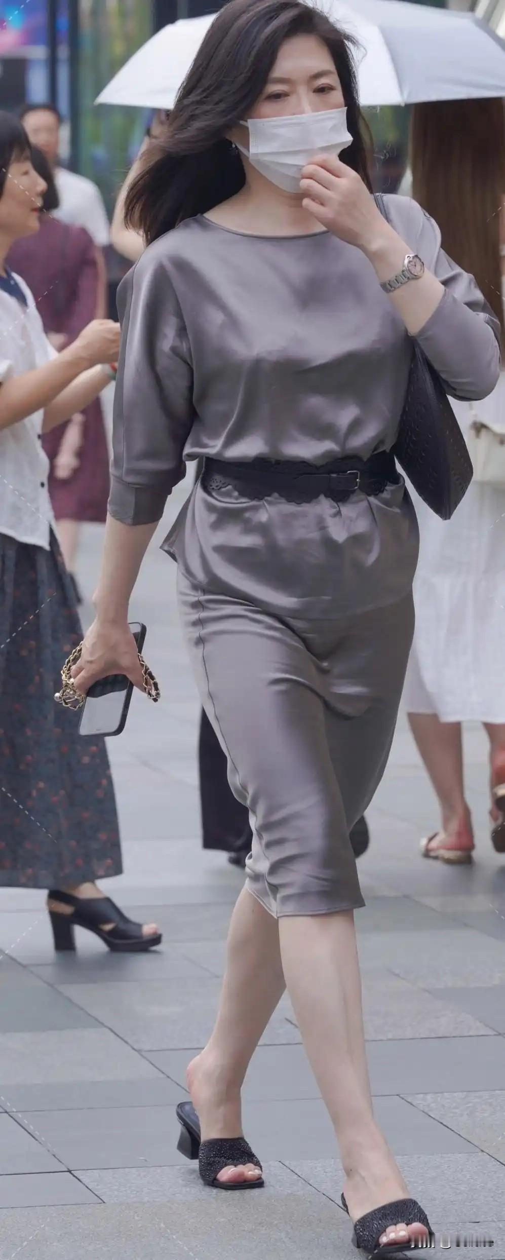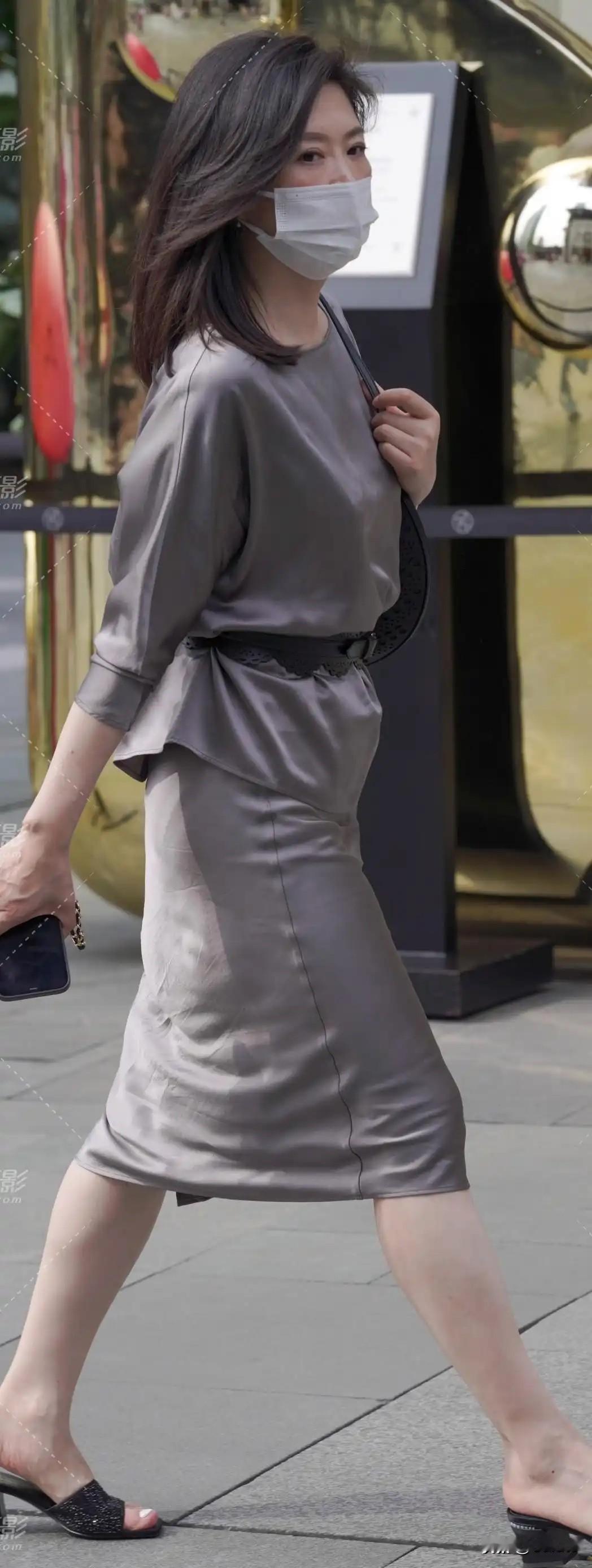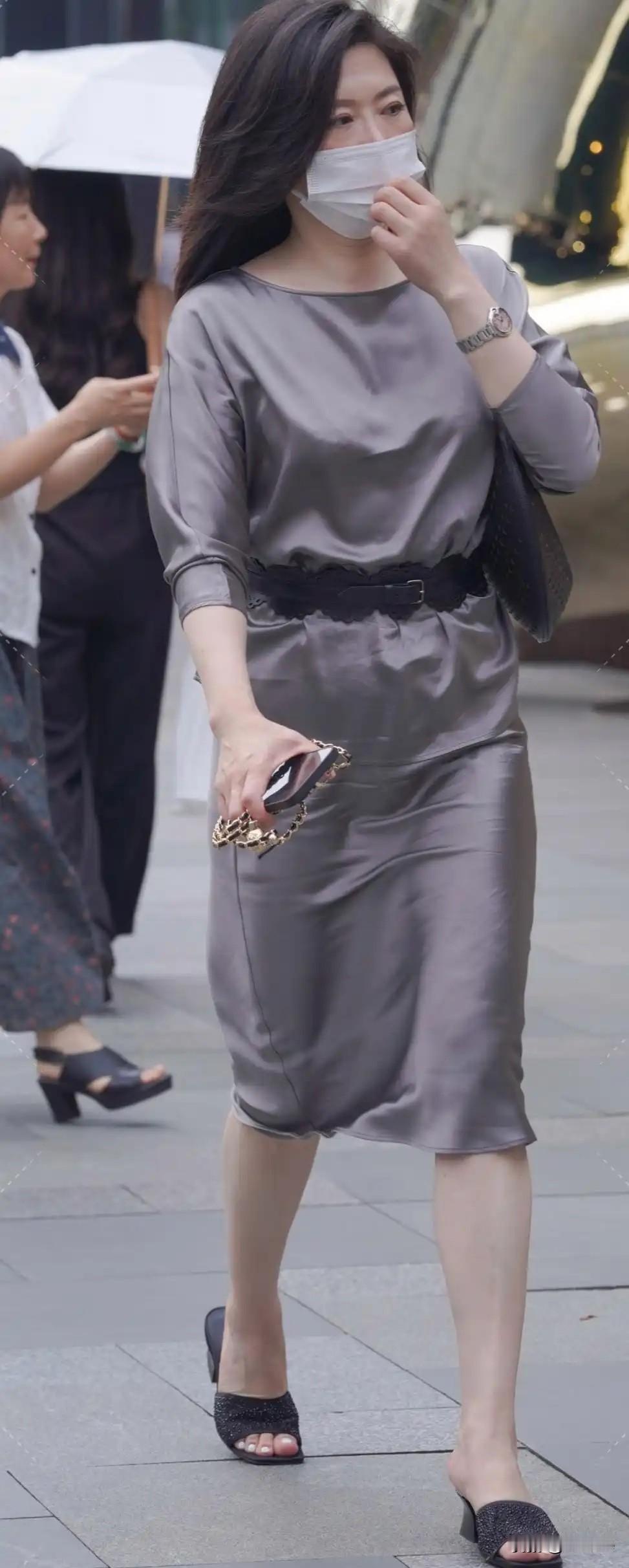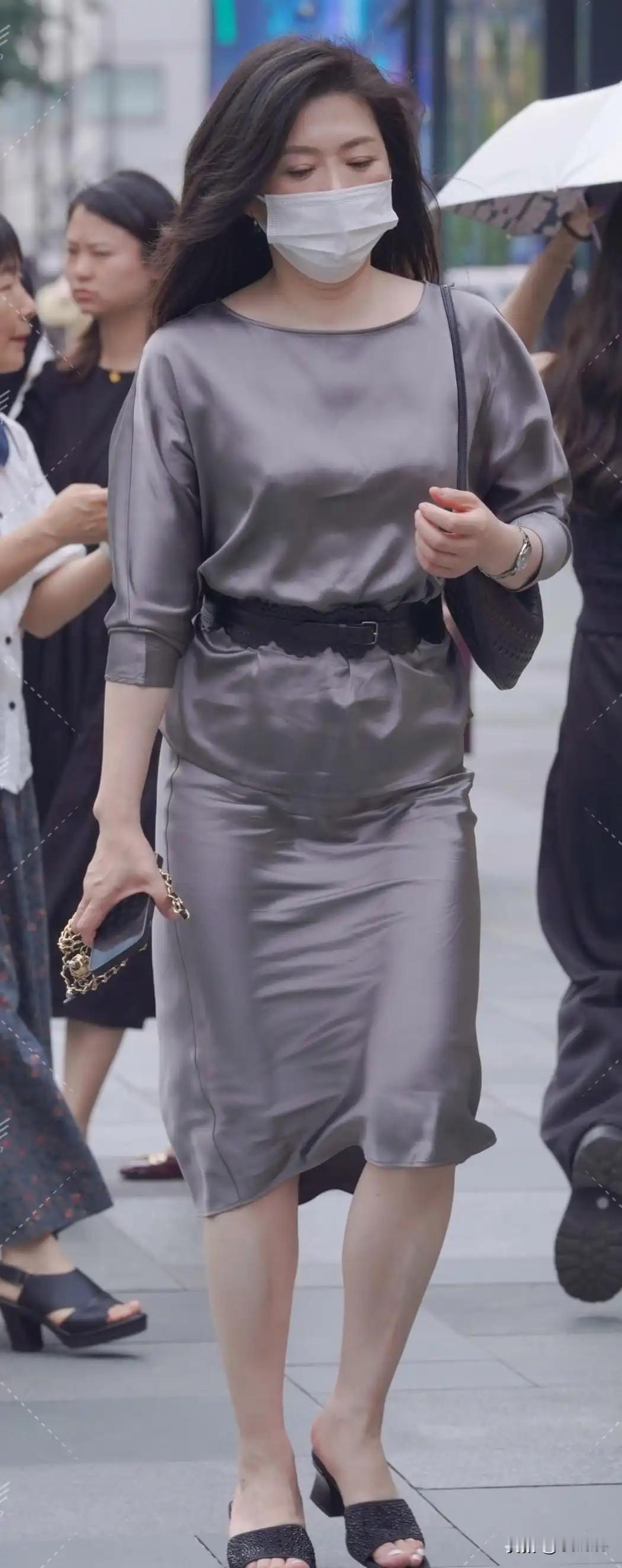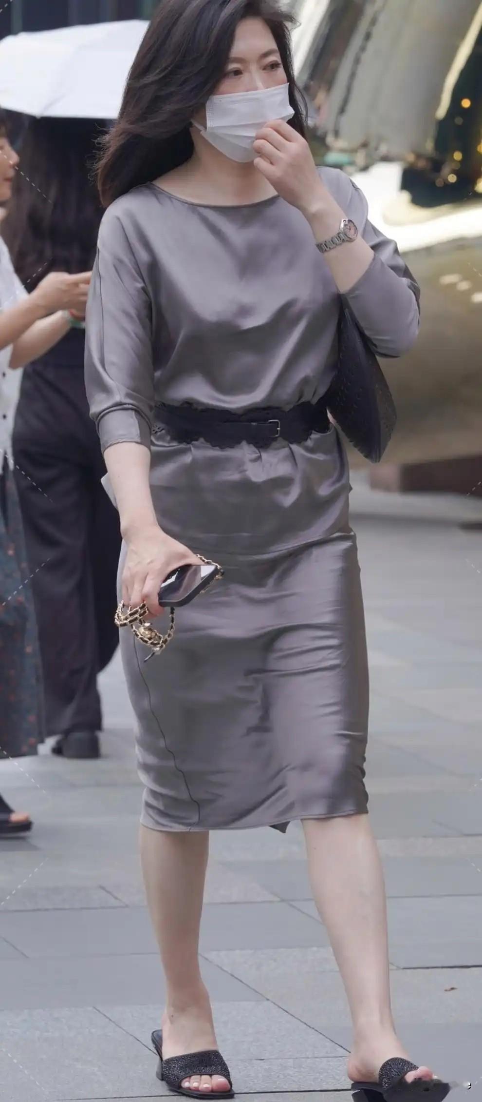 深灰色,是色彩世界中的智性之选。它比黑色多一分呼吸感,比浅灰多一分沉稳,自带一种不争不抢却无法忽视的存在感。它不依赖鲜艳的色彩吸引目光,而是以质地与轮廓赢得尊重。当这种颜色被赋予丝绸这一极具灵性的面料时,其魅力更被无限放大。七分袖的设计恰到好处地露出小臂最纤细的一段,既保留了夏日的清爽,又不失端庄。丝绸特有的柔光感在自然光下微微泛着珍珠般的光泽,随着身体的移动流转,仿佛披着一层流动的暮色,低调却极具氛围感。深灰灰穿搭