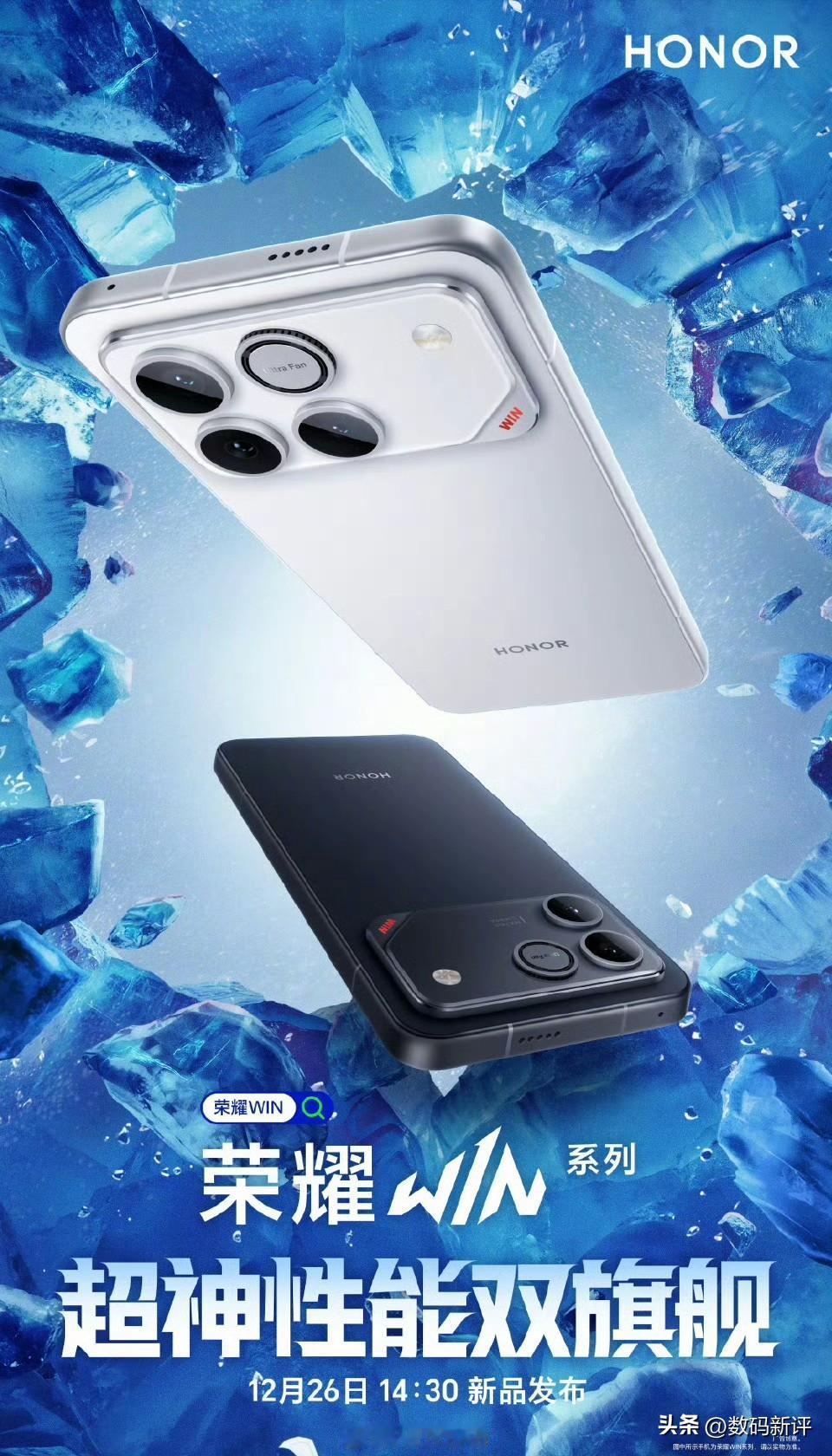 荣耀win系列新机官宣26号发布!还有配色和外观也来了![思考]白色是Pro版本,黑色是标准版,很明显标准版只有两颗镜头,硬件参考荣耀500?五千万像素主摄+1200万像素超广角,Pro就是多一颗直立长焦了[思考]白色版本看着很像某款机型!都是长方形模组,右下角红色win标识点缀,辨识度还不错