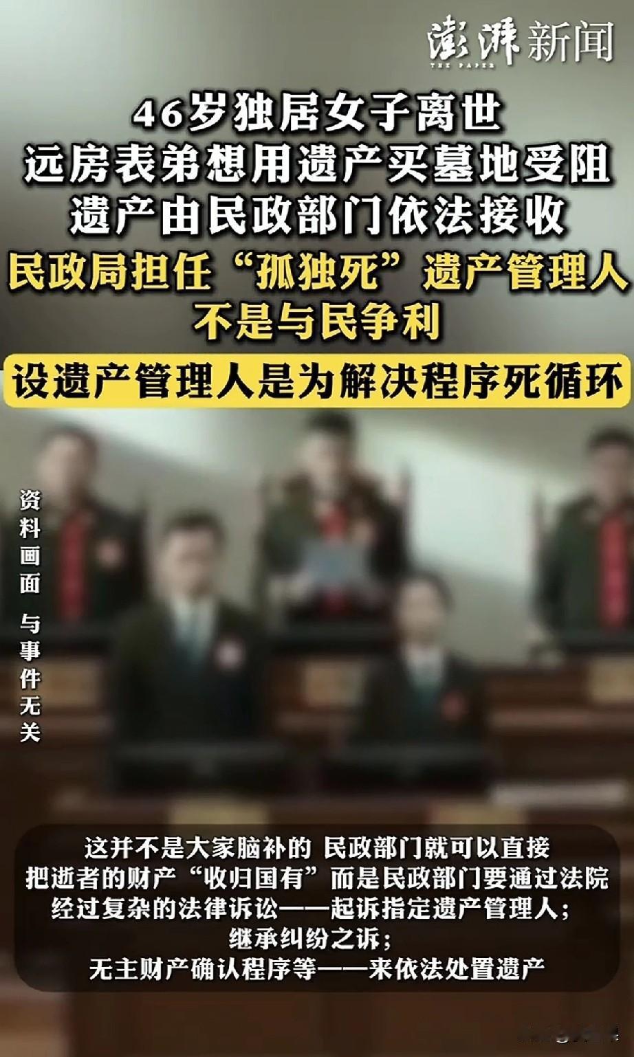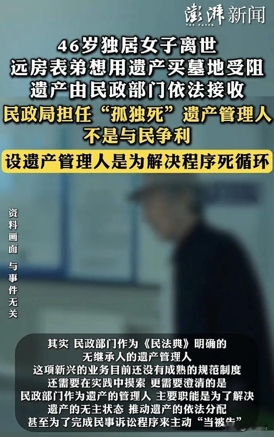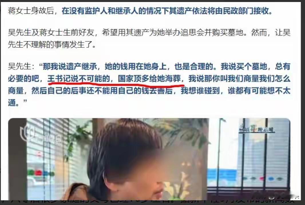 上海46岁的蒋女士去世了, 她的标签是未婚未育,父母早逝,身边没有一个亲人。 她就是一个独身的典型, 10月份突发疾病被同事送医救治, 当时就面临尴尬:需要医药费,蒋女士有医保也有积蓄,却没有一个人能合法使用。 当时网络热议这该怎么办, 毕竟挽救生命是第一要位的, 后来找到她一个远房的表弟,表弟也无权使用她的财产, 没办法,社区通过法律途径,暂时接管了,让蒋女士顺利救治, 可是最终挺了两个多月,她还是去世了。 这事儿就很难办, 如果蒋女士治好出院了,就没有现在很尴尬的局面。 现在她死了,不能葬墓地,所有财产充公,归社区所有。 远房表弟情愿给她选一个墓地,社区都不同意,说顶多海葬。 还敢不婚不育吗? 想起鲁山那个跳楼的女老师,在跳楼选择死亡的那一刻,她赢了, 而蒋女士的经历,她输了。