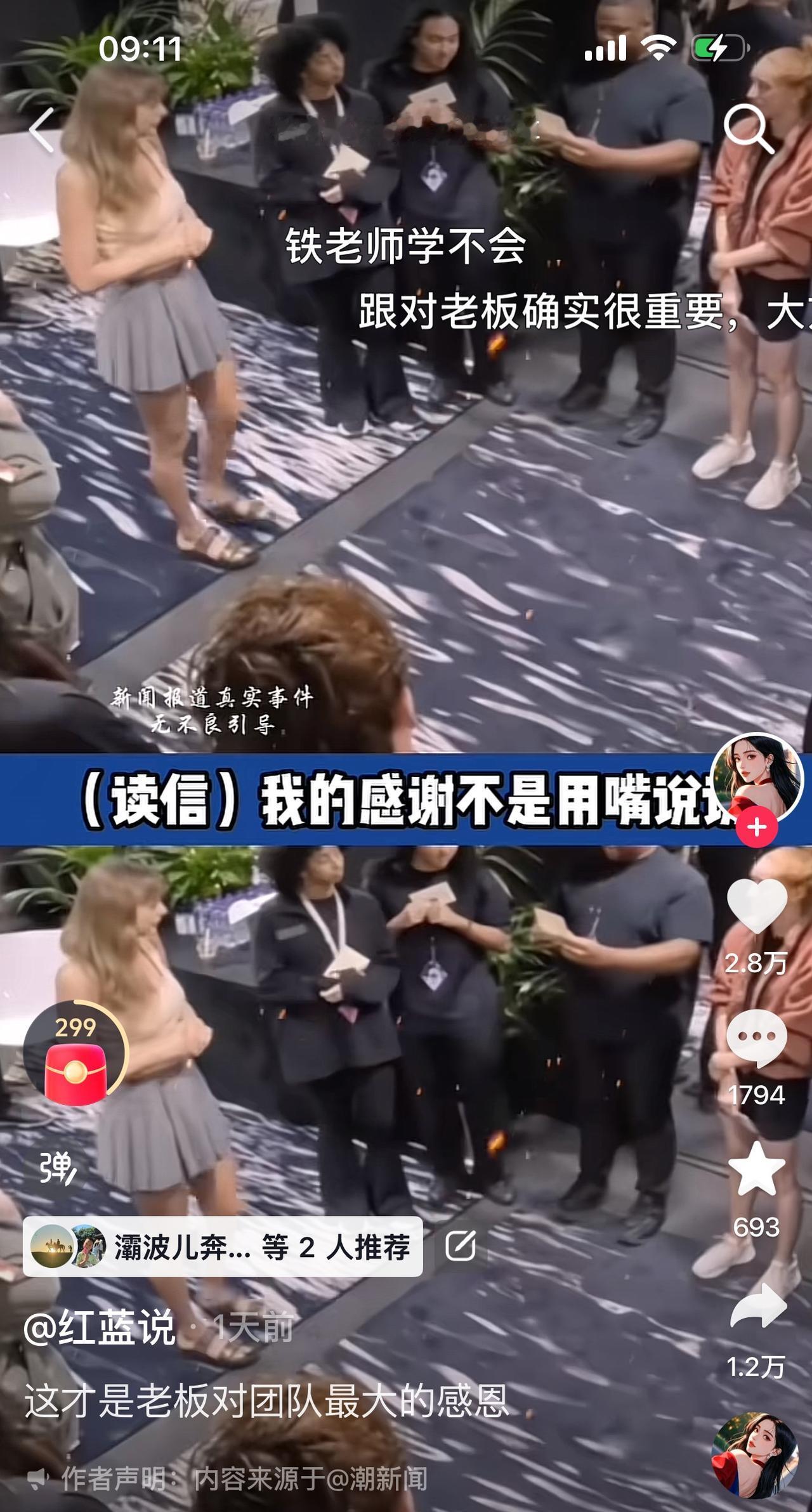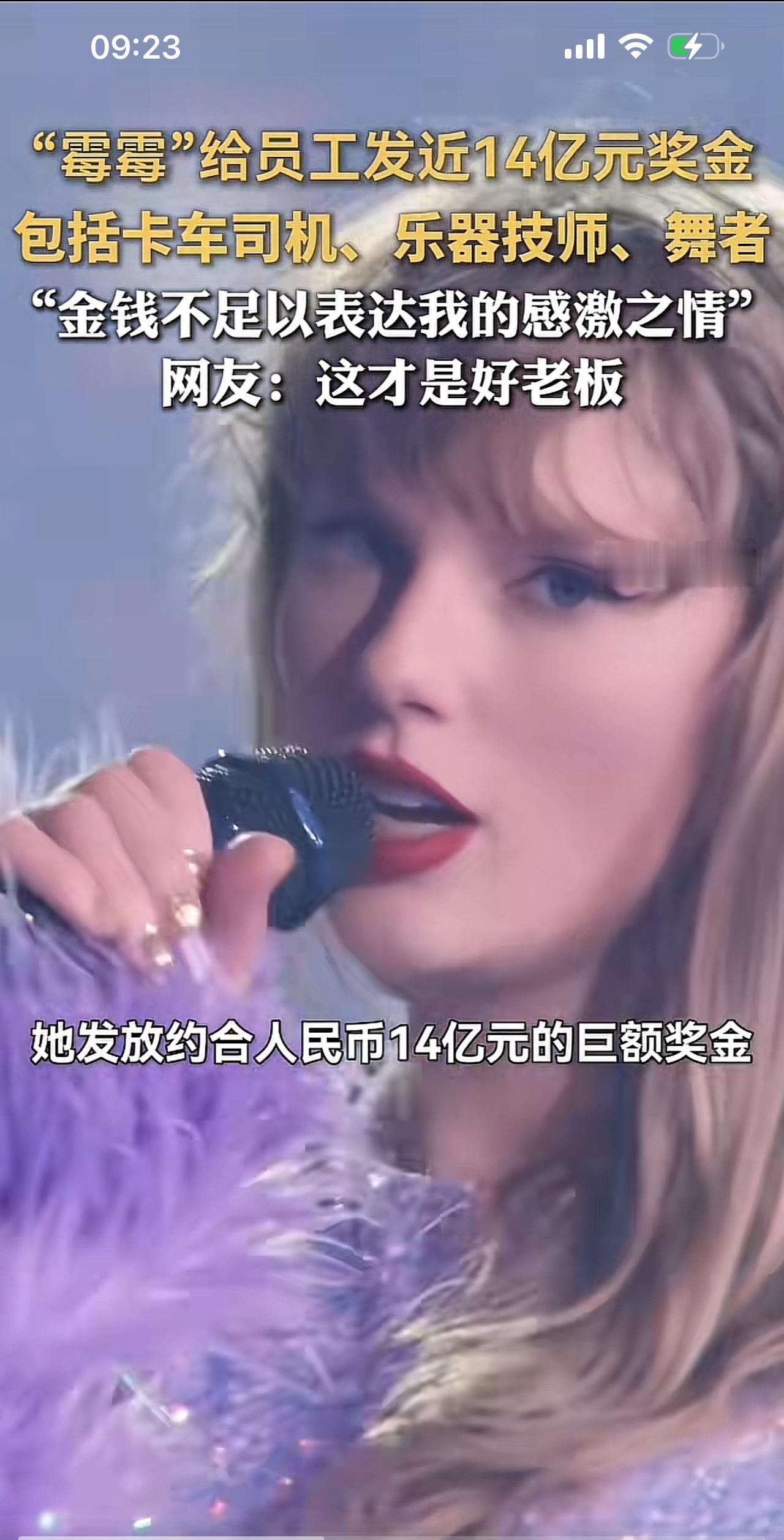 “霉霉”砸14亿给员工发奖金, 连卡车司机、乐器技师、舞者都有。 这消息一出, 在网上炸了锅, 大家都在说: “金钱不足以表达我的感激之情, 这才是好老板”。 这个热点一爆料, 又让“南极员工的一封信”火了一把, 这不比不知道, 一比就有点难堪。 员工需要的不是老板长篇大论的画饼, 也不需要老板那句不值钱的“感谢”, 他们要的是提高福利待遇, 要的是真金白银。 网友再一次对那篇情怀满满的“员工信”神评论: “句句不谈薪资, 条条不离奉献, 桩桩不谈好事, 事事皆讲境界。” 这就是资本市场, 这就是职场, 有的老板给员工发现金, 有的老板只会讲情怀画大饼! 操蛋的世界, 精彩的故事五花八门。 散会!
