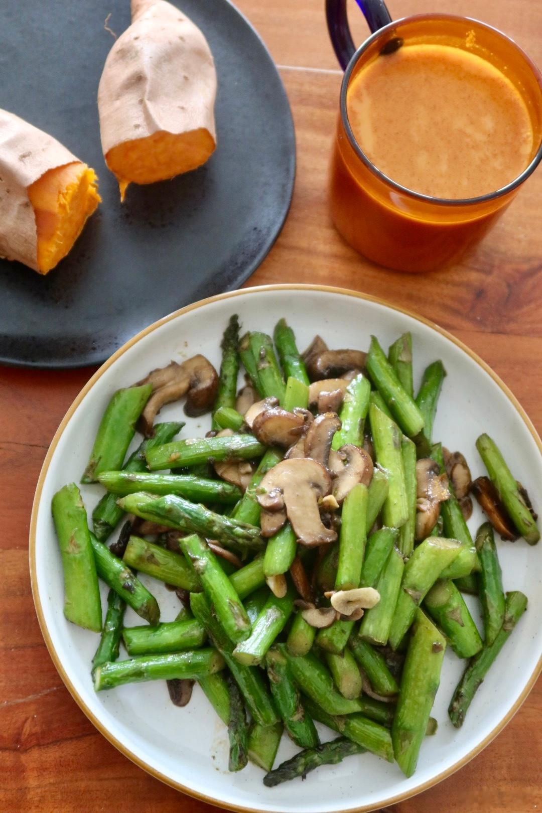 抗炎饮食day113✅冬天老想吃肉 贴点膘保暖早餐:陈皮梨水冲山药粉午餐:芦笋炒口蘑🍄(放了一点黑松露盐好好吃,黑松露盐很适合这种中不中西不西的菜)、烤红薯🍠、路易波士茶椰奶拿铁晚餐:培根(买不到火腿放一点代替一下)炒鸡油菌、培根(还有剩就代替五花肉吧)炒花菜、老广店的鸭子🦆培根虽买的只放了盐和芹菜粉的有机无添加版本,但毕竟是加工食品,偶尔解馋但最近出现频率有点多。猴父子的五花肉是美国难得能买到的没有骚味的猪肉。老广店的鸭子第二天再热一下吃的时候就能发现有多少油 今天青菜感觉没有吃够一斤,冬天老想吃肉是不是需要贴点膘保暖