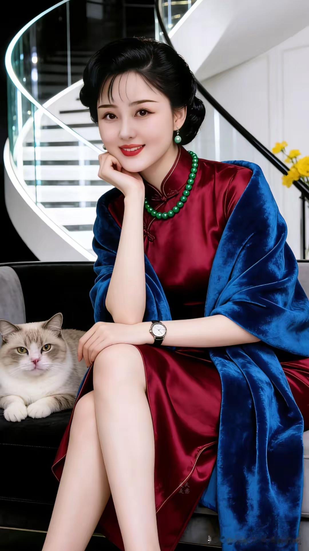 优雅红衣美人与猫咪的温馨时光🌸🐱