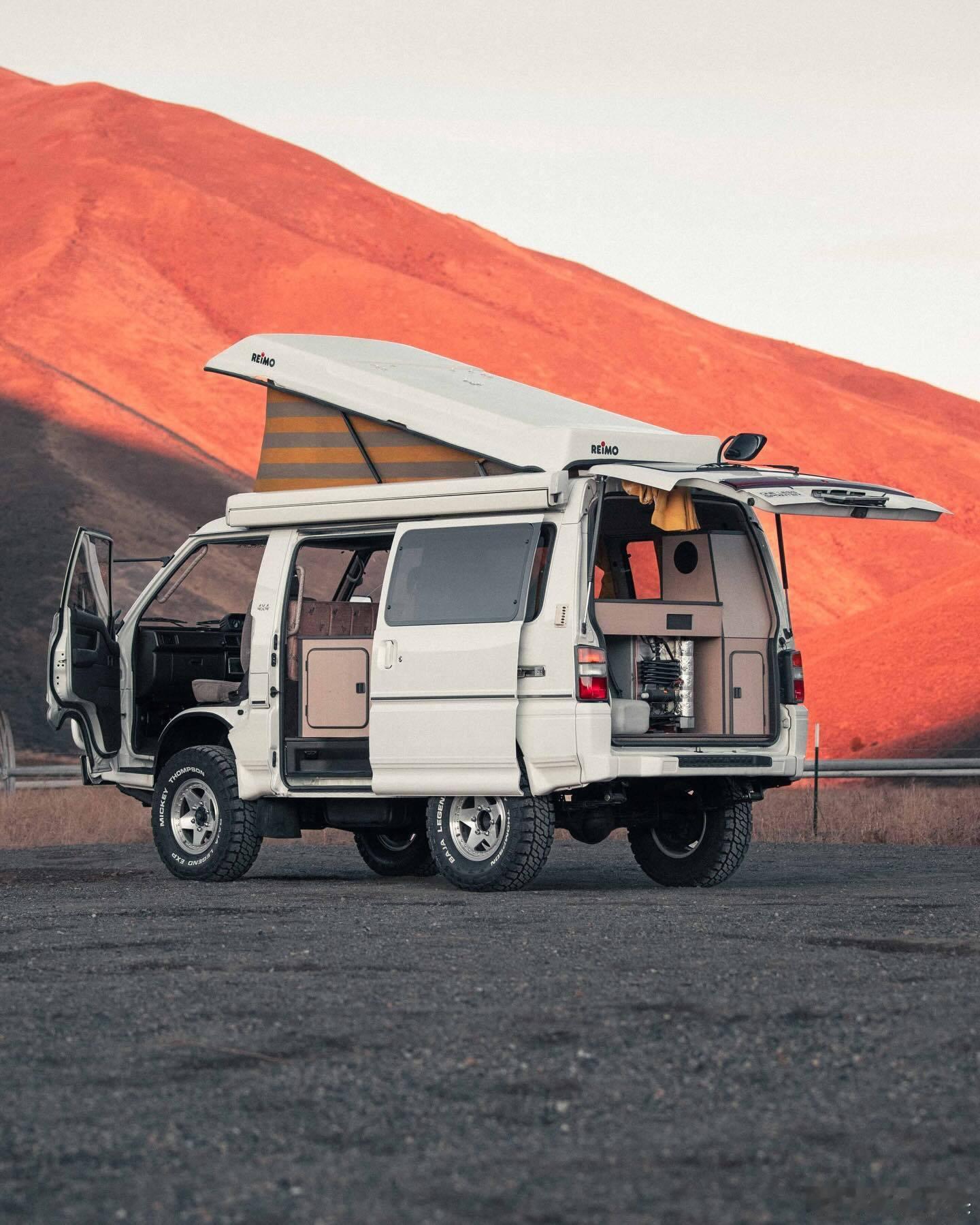 vanlife 1993 Delica L300 Star Wagon Reimo Pop Top Camper , 2.5L 4D56 turbo-diesel, 4WD.2英寸升高;31英寸米奇汤普森巴哈传奇轮胎;侧出排气;15英寸JDM铝轮子。l300delicacampervanreimocamperconversionjdmjdmlifestyle鞠婧祎每月25万元固定工资