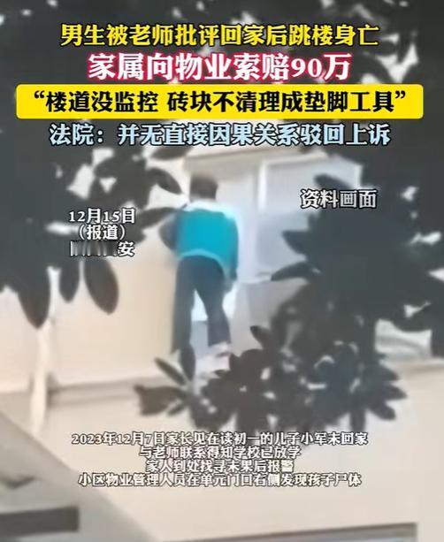 陕西西安,一个初中生在学校被老师批评了一顿,回到小区,他直奔27楼,一声不吭地一跃而下,离世了,这害苦了老师,校长和物业,因为这件事,老师被开除了,校长被免职了,物业被起诉索赔90万。 “我们怎么也没想到,孩子出去上学,就再也回不来了。”初中生的母亲事后哭诉,她的声音里除了悲痛,还有一种巨大的茫然和无助。对他们而言,悲剧的原因清晰而直接:孩子是在学校被批评后出事的。 面对巨大的悲痛和压力,学校方面迅速作出了处理:批评小军的老师被开除,校长被免职。同时,校方与小军家属私下达成了经济赔偿协议。这个结果,暂时让针对学校的追问平息了下去。 然而,事情并未结束。处理完学校这边,学生家属又把目光转向了小区。他们去了27楼,发现楼道窗户能完全打开,没有额外防护;窗台边散落着几块建筑用的砖头;公共区域没有安装监控。他们认为,物业没管好这些地方,也有责任。 于是,家属一纸诉状把小区物业公司告上了法庭,要求赔偿90万元。在法庭上,家属的代理人说:“如果窗户只能开一条缝,如果那里有监控能看到,他是不是就不会跳下去了?” 面对指控,物业公司感到无奈和委屈。楼道的窗户高度是符合国家标准的,不是个危险地方。放砖头确实没及时清理,是工作疏忽,但这和孩子自己跳下去,根本是两码事。物业认为,他们管不了、也没法预料到住户会这么做。 这场官司从基层法院打到了西安市中级人民法院。法官要判断的核心问题很明确:物业没清理砖头、没装监控这些事,和孩子跳楼去世,在法律上有没有直接关系? 2025年12月,法院二审结果公布:物业公司无需赔偿90万。判决认定,悲剧的发生是学生个人的选择,与物业没有法律上承认的直接因果关系。 这件事就像一面镜子,照出了我们身边好些让人无奈的现实。当老师的现在挺难,话说轻了不管用,说重了又怕孩子出什么事,这个分寸越来越难拿捏。像物业、商场这些地方的管理者也开始思考,他们到底要为进来的人的安全负多大责任?这个责任的边界到底在哪儿? 但说到底,这件事最让人揪心的地方,可能还不是最后谁赔了钱、谁受了处分。而是那个孩子,从被批评到走上27楼,中间那么长一段时间,他一个明显的求救信号也没发出。我们事后可以讨论责任,划分对错,可一条命已经救不回来了。 在争辩“到底该怪谁”的同时,我们是不是更应该想想,怎么早点发现那些正悄悄走向“27楼”的人?可能是身边突然沉默寡言的孩子,可能是情绪低落的朋友。多问一句“你还好吗”,多给一点耐心听听他们的心里话,也许就能在关键时刻拉住他们。因为有些告别,实在太安静了,安静到我们事后再怎么追悔,都来不及了。 信息来源:半岛晨报 文|晓晖 编辑|南风意史