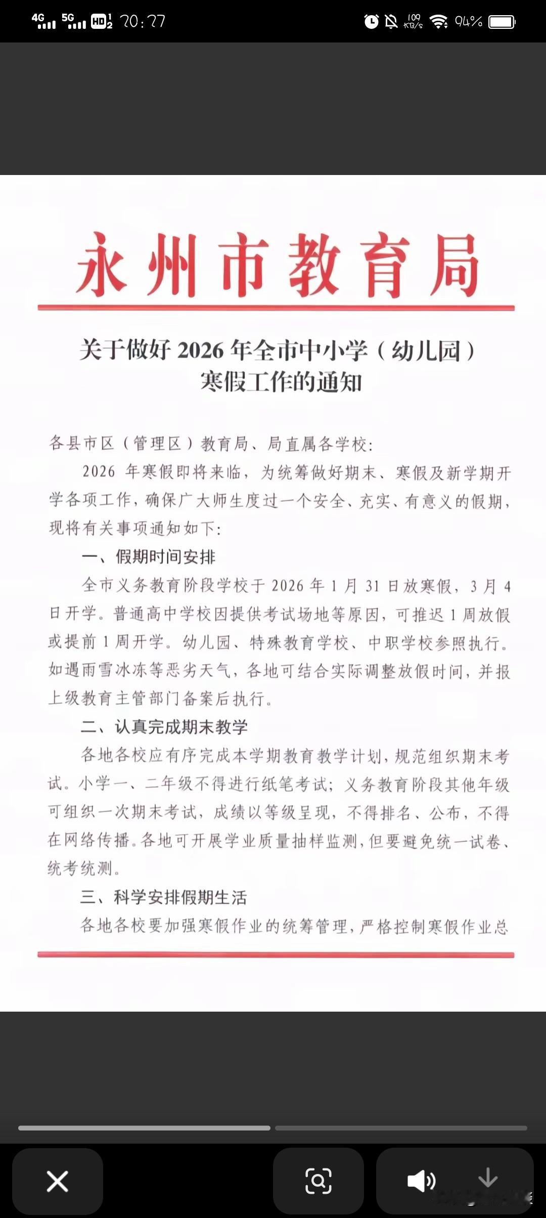 今年寒假放得有点早,我查了一下,2月16日才是农历新年除夕,1月31日开始放假,刚好是腊月十三。这意味着年前可以有17天的假期,年后到3月4日开学,即正月十六,这么算起来,整个寒假长达33天!这应该说是近年来比较长的寒假了,记得很多年的寒假都没有超过30天,这回算是给了孩子们的福利了,大概是个小惊喜吧。话说这个中小学的寒暑假期,究竟是哪一级的教育行政部门负责决定的?貌似全省各地都不一样,更别说全国一盘棋了。所以,这种假期跟国家节假日办没多大关系吧,甚至放假的权限也不在教育部吧。县教育局的权限更低,估计很可能是省厅和市局的共同决定。