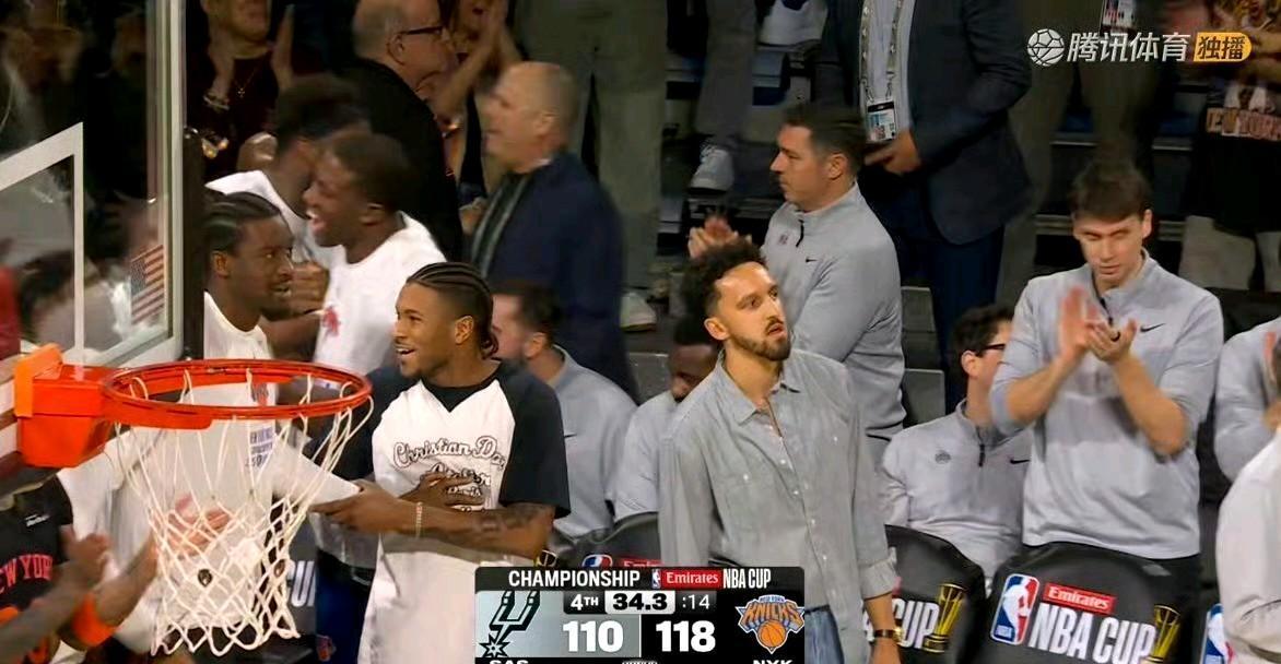 50万美元奖金,尼克斯要赢了,第三届杯赛冠军!马刺20万美元,但是NBA杯赛冠军一般很难夺得总冠军…… 尼克斯上一次夺冠是1972-73赛季,他们在总决赛中以4-1的总比分击败湖人。 52年之后,他们终于再次夺冠,虽然是NBA杯冠军,但是杯赛冠军也是冠军。 文班亚马交学费了,路还长……