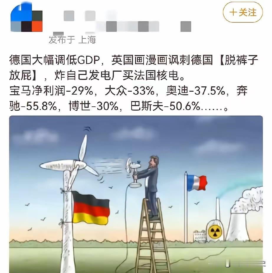 德国真的被白左害惨了,德国今年GDP大幅调低,连英国都在笑话德国,自己把发电厂炸了,然后花钱跟法国买核电,就这样了,德国的白左政客还觉得不环保,提议从法国买回来的核电先电解水制成氢气,然后再用氢气发电,这样才是真正的环保,因为氢气燃烧只会产生水! --- 听完这段描述,你是不是觉得荒诞得像一出黑色喜剧?但这恰恰是当下德国能源政策困境的真实切片。当环保理想脱离工程现实,就会上演这种让人哭笑不得的闹剧。 德国今年确实“熄火”了。年初,德国政府将2024年经济增长预期从1.3%大幅下调至可怜的0.2%。曾被视作欧洲经济引擎的德国,如今被国际货币基金组织(IMF)预测将成为今年唯一负增长的发达经济体。这背后,能源政策的剧烈转向是一记重拳。 那“自己炸发电厂”指的是什么?正是德国激进的“弃核退煤”战略。2023年4月,德国关闭了最后三座核电站,为长达六十年的核能时代画上句号。同时,为了环保,德国也在加速淘汰煤电。这留下了一个巨大的能源窟窿。 电不够用了怎么办?德国的办法是转头向邻居购买。其中,核电占比高达70%的法国成了重要供应方。2022年,德国首次成为电力净进口国,从法国进口的电量创下新高。这形成了一个极具讽刺的画面:德国关停了自家的“不环保”核电站,却用着法国核电站发来的电。 更魔幻的剧情还在后头。部分德国政客和环保人士竟提出,进口的核电也不算绿电。他们构思出一个“终极净化”方案:用这些核电电解水制造“绿氢”,再用氢气发电。这样一来,电的“出身”就纯洁了。 从工程和经济学角度看,这个想法简直疯狂。能源转化每一步都有巨大损耗。电解水制氢效率约70%,氢气再发电效率约50%。七折五扣,最终一度电的成本和浪费的能源高得吓人。这哪里是环保,分明是资源与财富的盛大挥霍! 这种极端思维的根源,是某些“白左”政治理念将环保教条化、意识形态化。他们追求的不是解决问题的务实方案,而是一种道德上的绝对正确感。过程是否浪费、人民是否负担得起、国家竞争力是否会受损,都被置于次要地位。 其苦果已经显现。德国工业,尤其是耗能巨大的化工、钢铁企业,正因高昂且不稳定的能源价格而外迁。老百姓的能源账单越来越厚。国家经济的根基正在被侵蚀。当英国媒体戏谑“德国模式已死”时,那笑声背后是残酷的竞争现实。 环保无疑是崇高的目标,但实现它的路径必须是科学的、经济的、循序渐进的。否则,那种“用金锄头种地”式的极端环保,只会拖垮经济,最终让环保事业失去民心,无以为继。 德国的教训如同一面镜子:任何脱离现实、违背基本常识的政策,无论口号多么动人,终将让国家和人民付出沉重代价。务实,才是对未来真正的负责。 各位读者你们怎么看?欢迎在评论区讨论。 德国 欧盟德国 德国能源问题 德国全军覆没