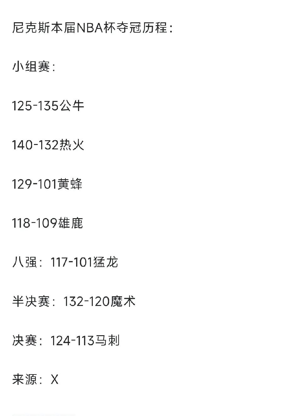 尼克斯上一次夺冠这个人才5岁,如今他51岁了。杯赛的魅力,确实好看,恭喜纽约尼克斯!得篮板者得天下,让米罗给篮板抢爆了,文班今天的状态很差,防守也一般,最后一节崩盘了,纽约太需要这个冠军了,马刺这些小年轻们也是未来可期,今天哈珀打的真不错!
