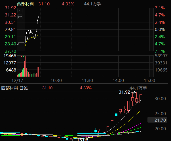 西部材料002149强势拉升了,稳健的可以止盈一半先,激进的可以继续博弈。西部材料 sz002149[股票]