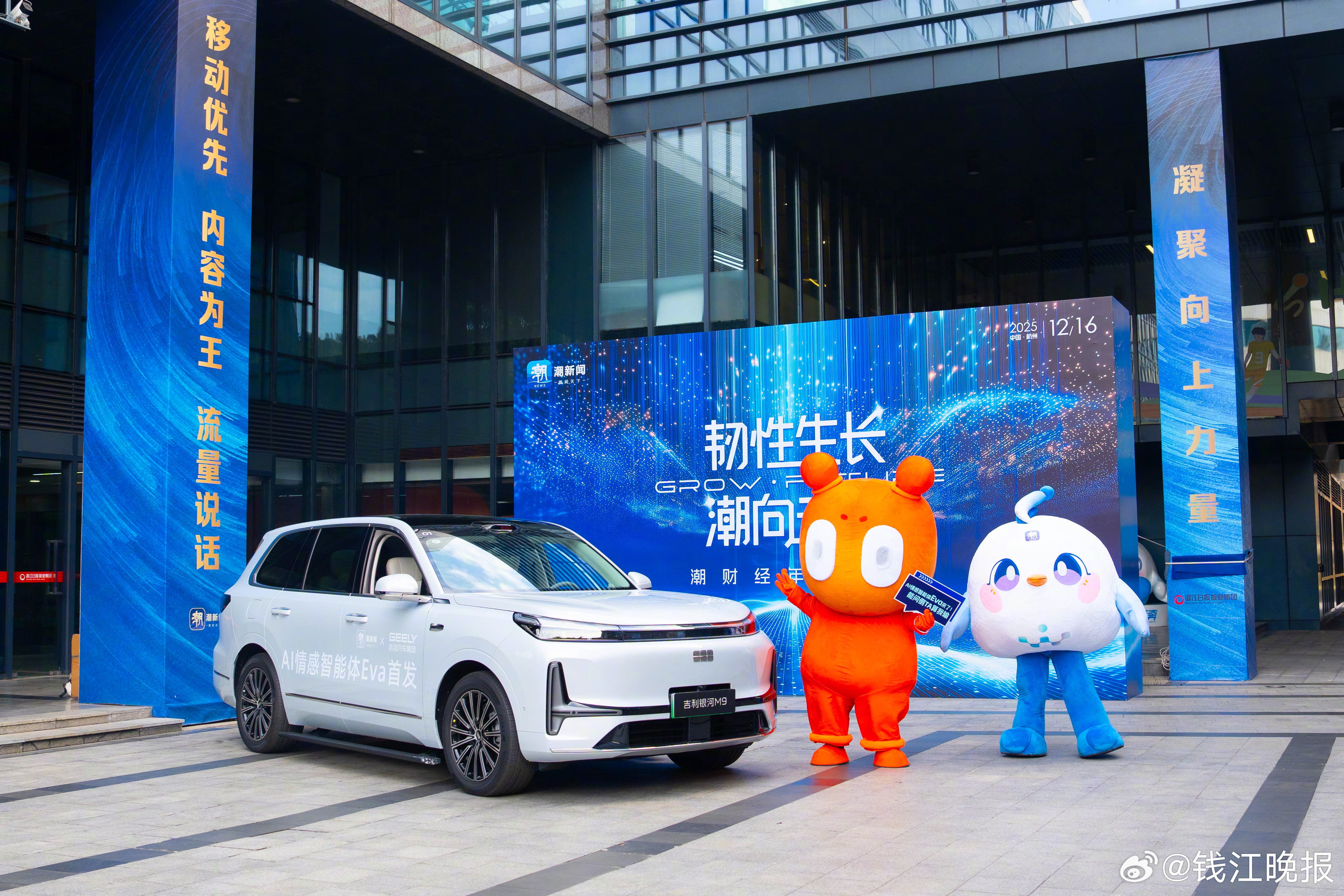 #杭州又首发一AI智能体# 潮新闻联合吉利汽车集团举办AI情感智能体Eva首发活动。 Eva和潮新闻吉祥物潮奔奔组成CP,一起“出道”,智商、颜值拉满,受到围观。很多人坐进搭载Eva的吉利银河M9后感叹:不仅智能,还能提供情绪价值,赞!#杭州首发的智能体解锁新身体#