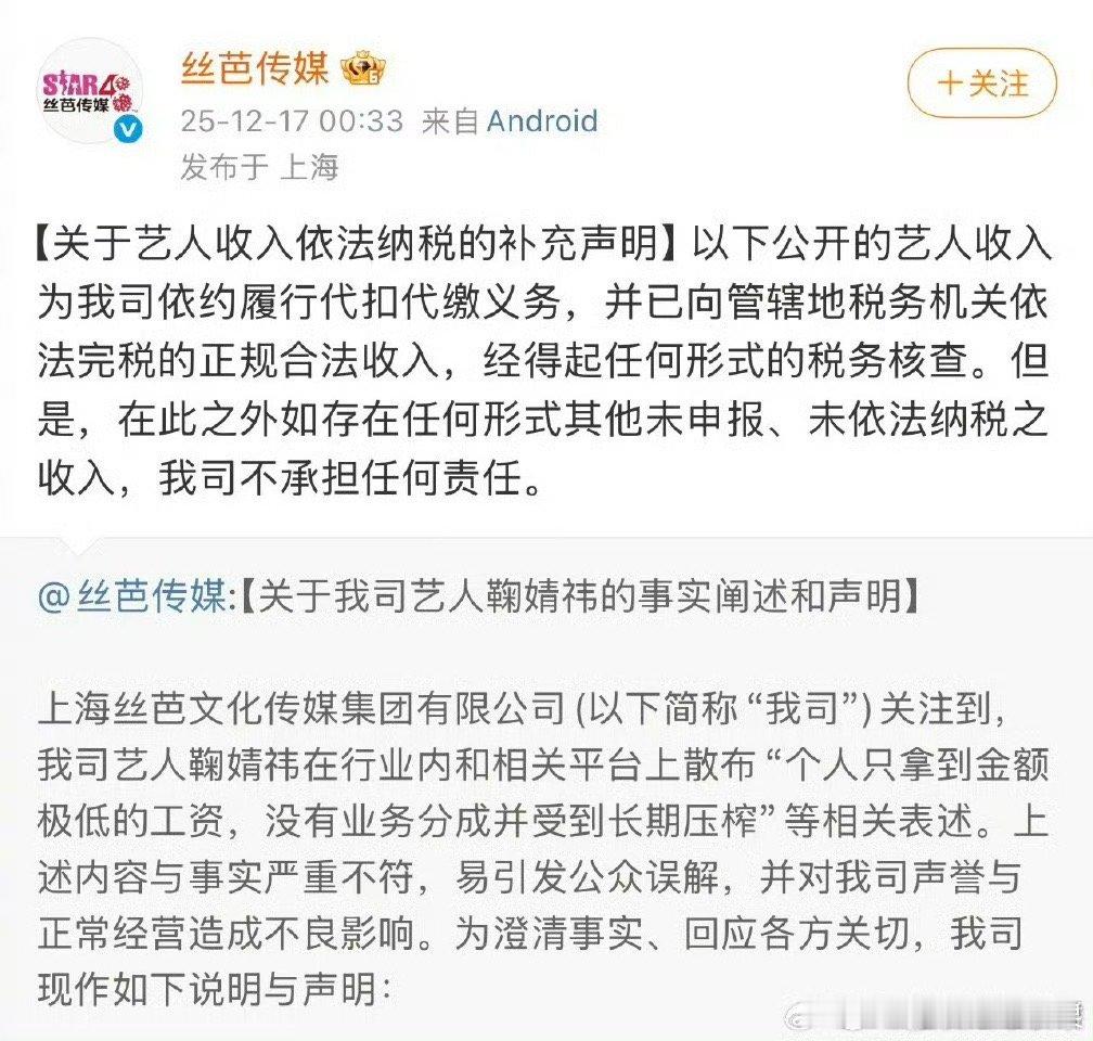 我去 丝芭传媒致鞠婧祎的最后告知来了 看上去真的好严重 不知道鞠婧祎会如何回复