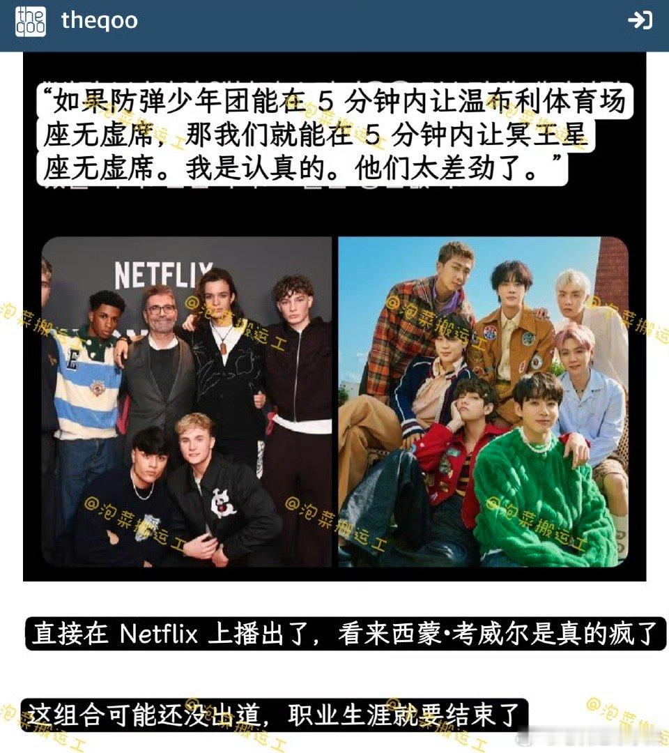 Netflix 与西蒙·考威尔推出的新人男团 因看不起防弹少年团(BTS)而引起热议争
