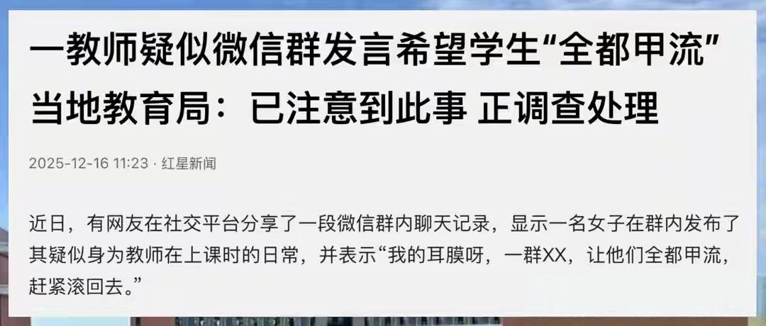 师德何在?陕西铜川女教师群里诅咒学生们都得甲流,还拿编制当挡箭牌? 真的被这位李老师给气炸了!她作为一年级音乐老师,嫌学生吵闹就在微信群里骂孩子,甚至诅咒“让他们全都甲流,赶紧滚回去”,这是人话吗? 更离谱的是,有人质疑她,她还理直气壮说“工资到手就行了”“巴不得外行举报”,甚至拿编制当护身符,觉得有编制就可以肆无忌惮?教师这份职业的初心是教书育人,不是拿着铁饭碗就随意践踏学生的尊严,发泄自己的负面情绪! 现在当地教育局已经介入调查,希望能给家长和孩子们一个公道。编制从来都不是任性的挡箭牌,师德才是教师的立身之本,这种连基本职业素养都没有的人,真的配站在讲台吗?