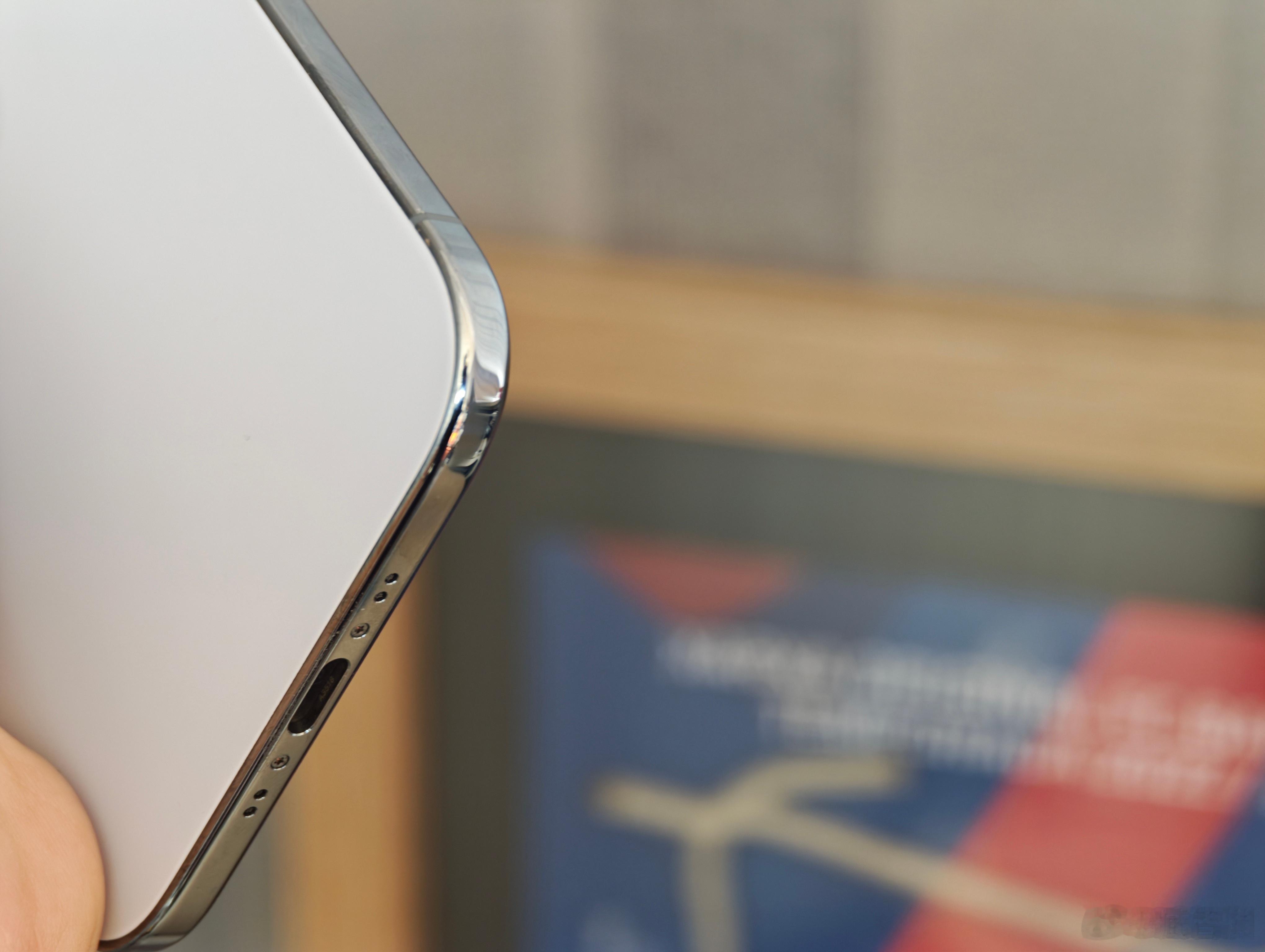 前几天晚上吃饭桌面是斜的,iPhone Air首摔,大概1.5m一个角落地瓷砖地面,钛合金边框没啥痕迹。怎么感觉两个R角曲率不太一样了?