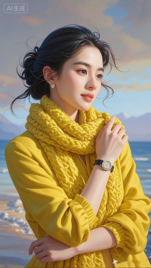 温柔的海边时光,暖黄色调下的少女,让人心动的瞬间。