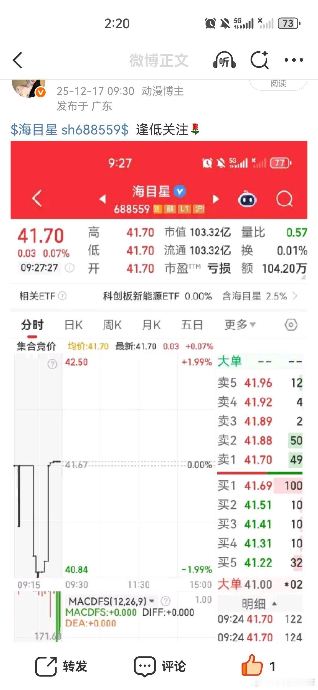 $海目星 sh688559$ 大涨大涨在车上的家人们出来互动一波158观望没上车的家人们出来互动一波888,一起吃肉